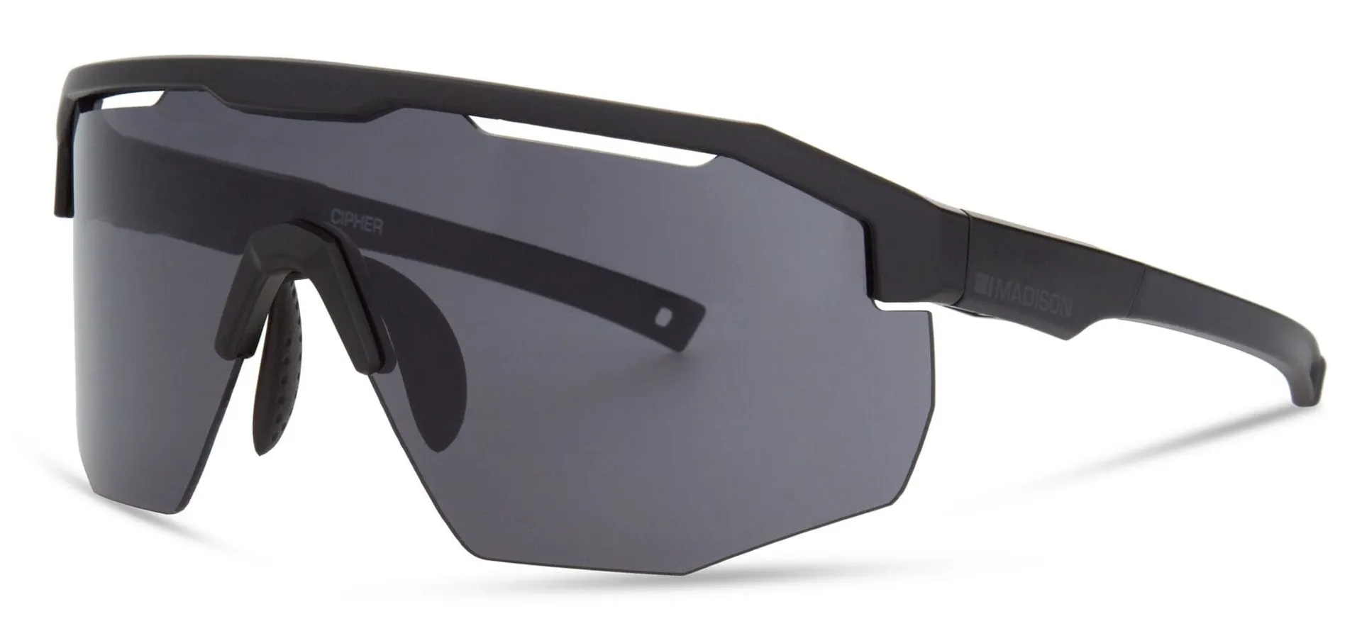 The Madison Cipher Sunglasses frame offers an excellent field of vision and protection. With an adjustable nose piece and temple tips, it tailors to fit all face shapes and stays firmly in on any terrain.