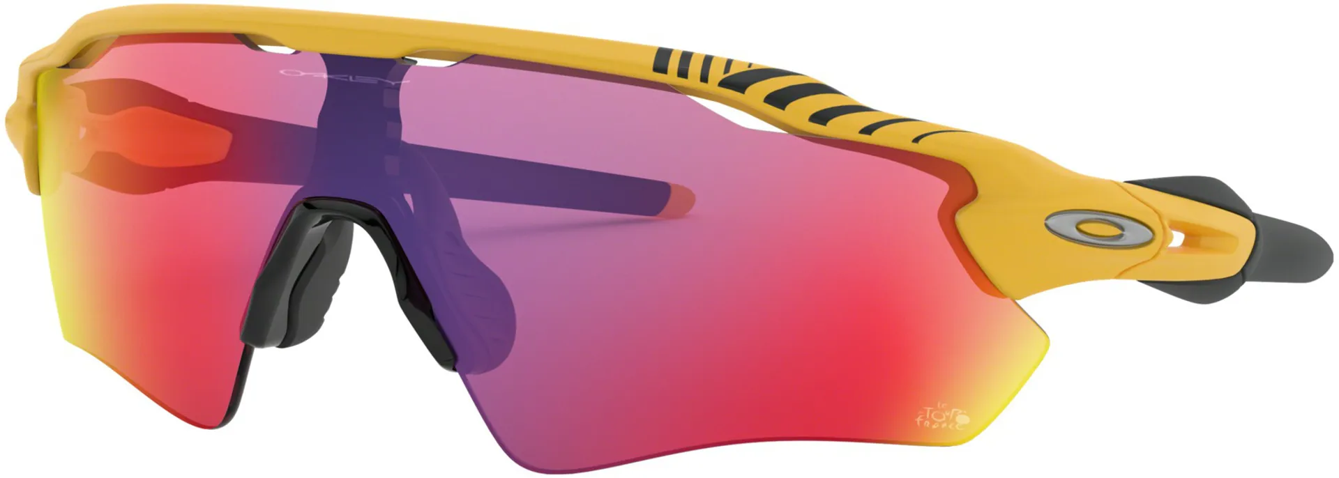 The Oakley Radar EV Path Sunglasses. To honor the 100th anniversary of the first yellow jersey worn by the Tour de France race leader, each piece in the 2019 Oakley™ Tour de France Collection features platinum accents—and Prizm™ Road lenses to represent the heart and soul of the race. Our original Radar™ eyewear combined everything we learned from decades of research with the world's best athletes, and with the taller lens of Radar EV and its extended range of view in the upper peripheral region, the heritage of performance has a new milestone.