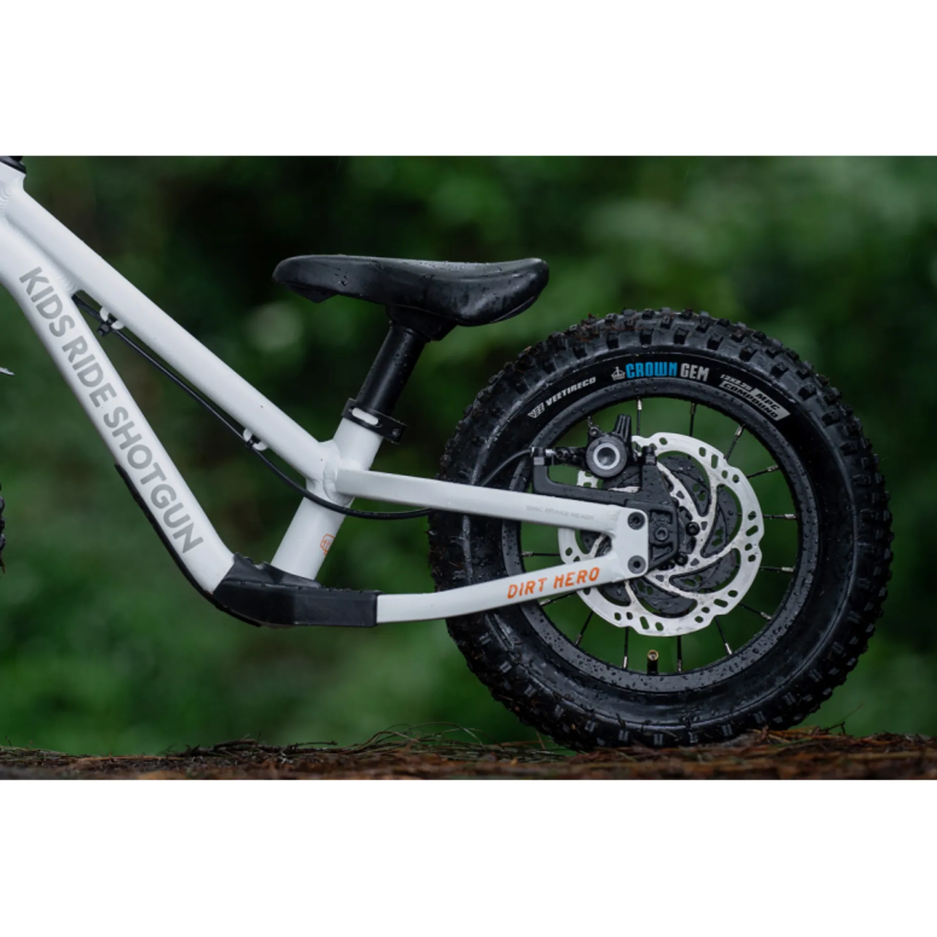 The Kids Ride Shotgun Dirt Hero 12" Balance Bike With Brake is designed for MTB kids who want to hit the trails.