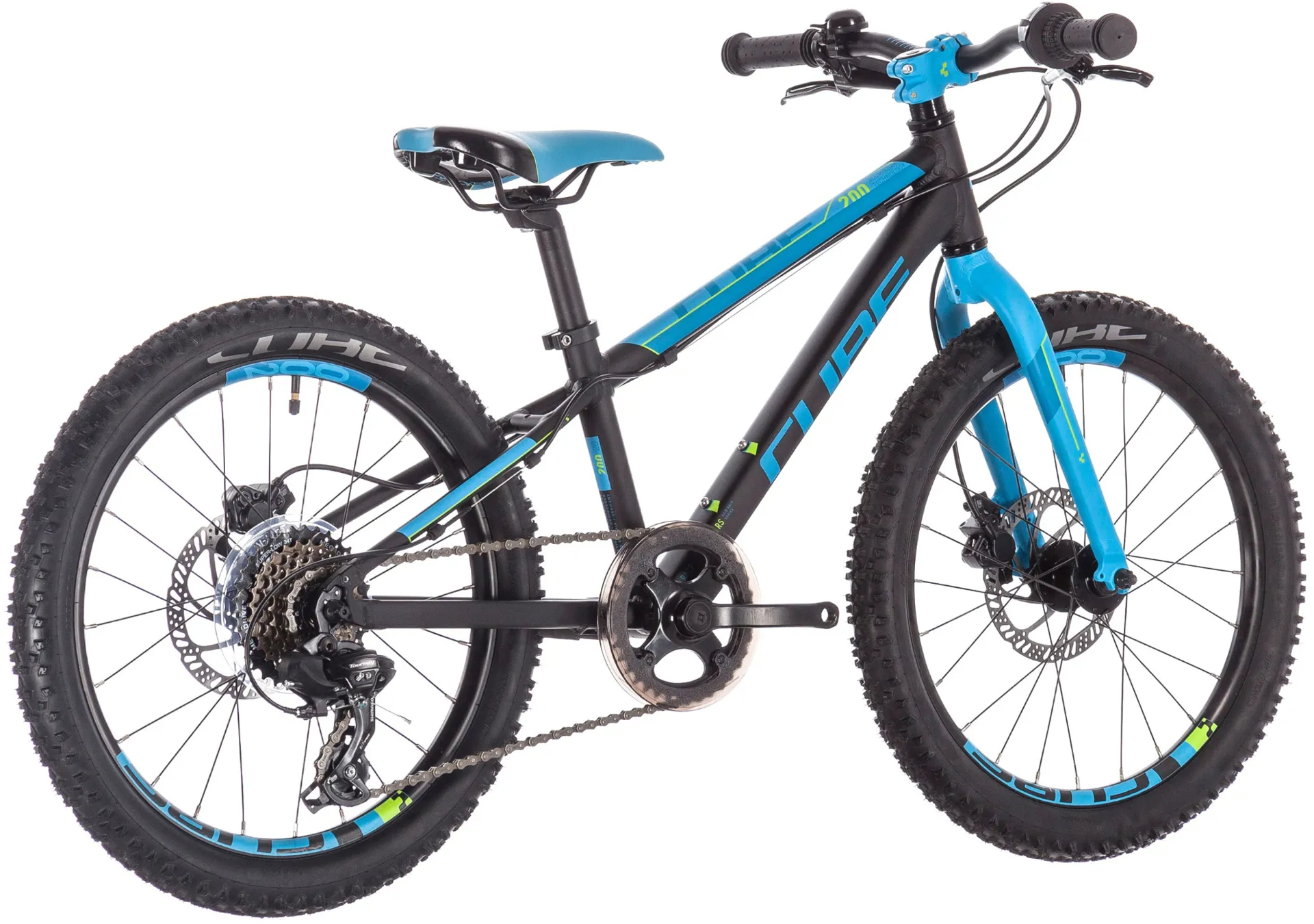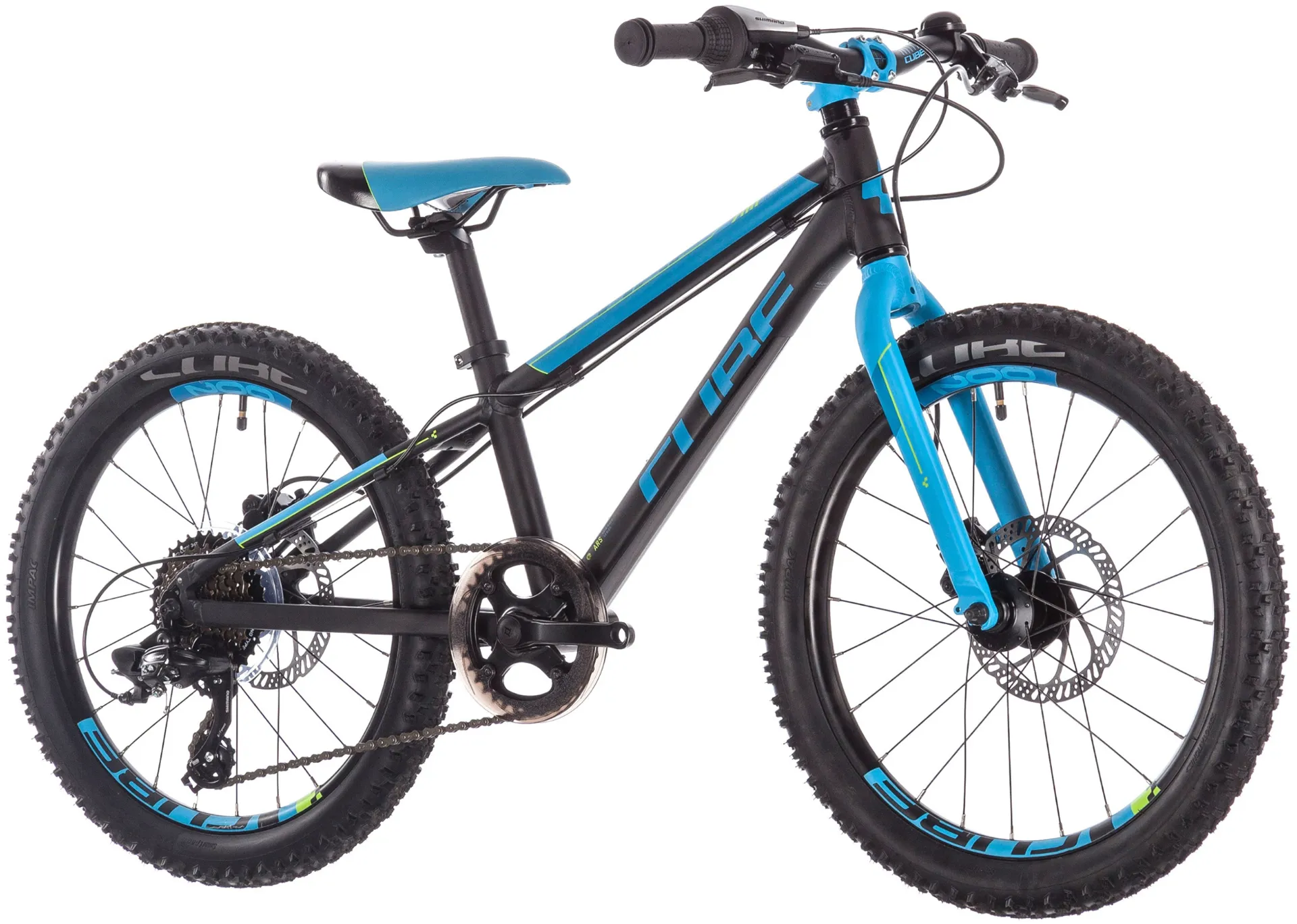 Featuring hydraulic disc brakes front and rear and an easy-shifting Shimano 7-speed gear setup, it's got everything the aspiring junior mountain biker could wish for. The heat-treated 6061 aluminium frame - with lightweight alloy fork - is crafted with the same attention to detail as Cube's full-size bikes so that it's light, tough and handles beautifully. A replaceable derailleur hanger means that accidents don't need to mean a written-off frame, and brake levers designed for smaller hands ensure that your child can learn to control their speed safely. There's even a large 34-tooth bailout gear to provide some extra help for tired little legs on long or steep climbs. With grippy and comfortable CUBE tyres and a colour scheme that coordinates the frame, wheels and components, it's all your child needs to expand their horizons.