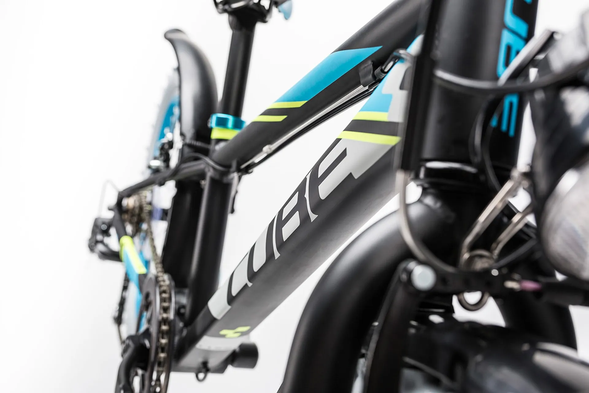 The high quality, heat-treated 6061 aluminium frame is on the same level, quality-wise, as a regular sized mountain bike - but it's still very light. Just like the CUBE 200, the derailleur hanger is replaceable. And, just like a real mountain bike, the frame has V-Brakes front and rear. Bright paint finishes give it a distinctive look and also help it stand out in traffic.