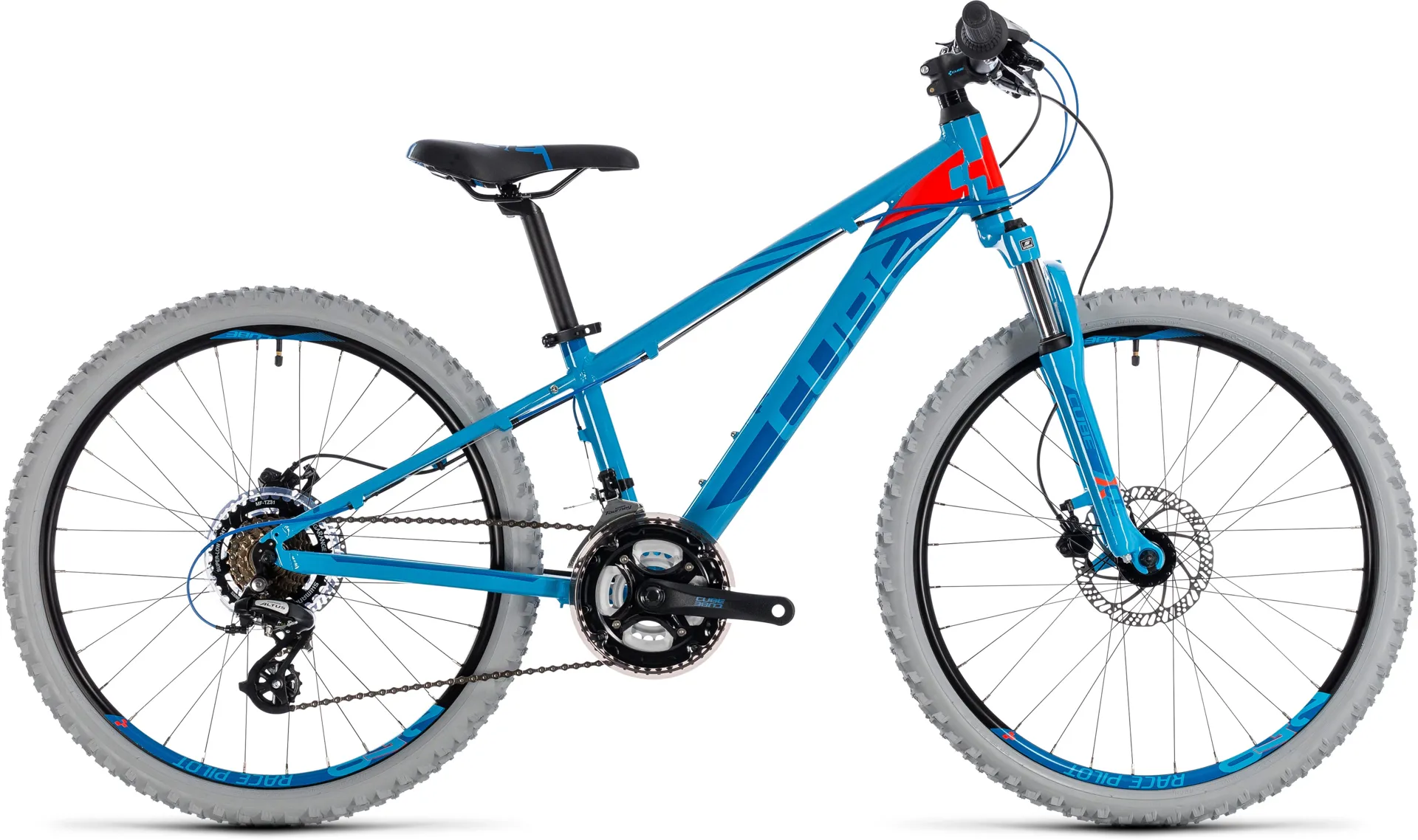 The heat-treated 6061 aluminium frame is just as durable as an adult mountain bike, but still the right weight for a child. Mechanically-formed tubes mean it's bang up to date in terms of technology. Kids geometry was tailored to the needs of young CUBE riders - it includes a very low top tube, which gives more freedom to move around on the bike. The derailleur hanger is also replaceable, because kids always want to test their limits.