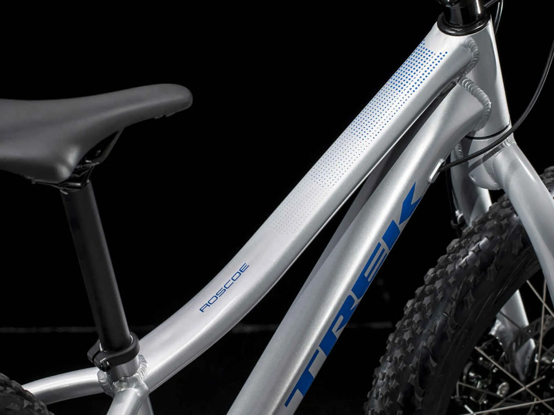Roscoe 20 is a mid-fat kids' mountain bike designed to build confidence on the trail. It takes cues from the adult Trek Roscoe, but this ride was built from the ground up for kids. 2.8˝ mid-fat tyres, a 1x drivetrain and a wide-range cassette make Trek Roscoe 20 the ideal bike for little rippers who want to build skills and have a ridiculous amount of fun keeping up with mum, dad or an older sibling. Fit for riders 114-132 cm /45-52˝ tall.