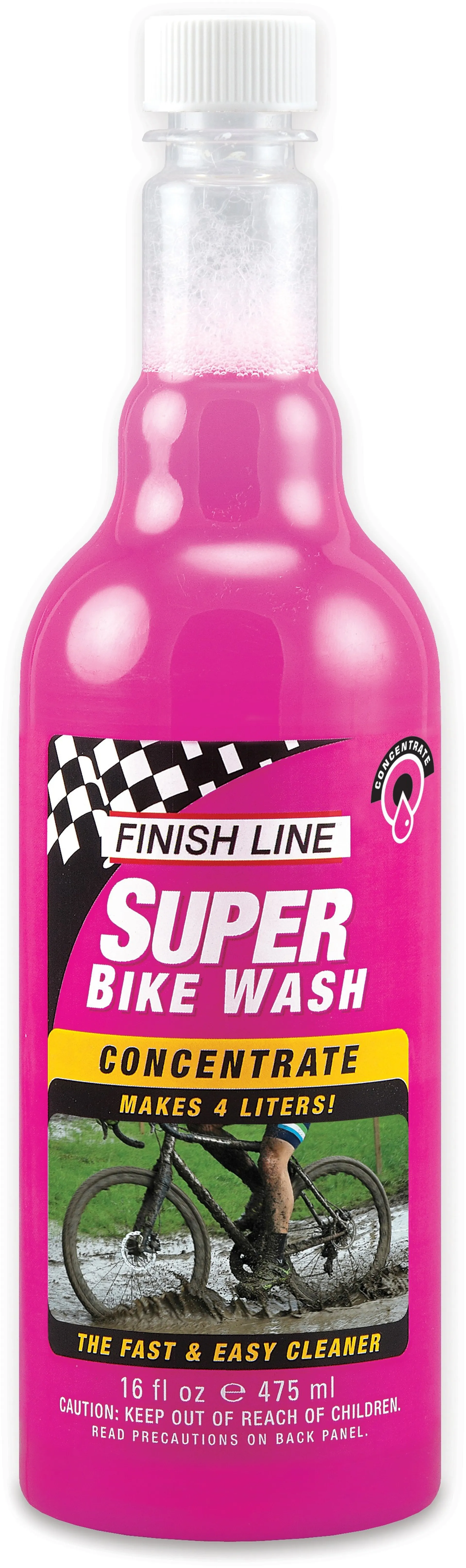 Use Finish Line Super Bike Wash™ to quickly clean dirt, clay, road grime, chains, nutritional residues and winter grime off all surfaces of your bike with little to no scrubbing.