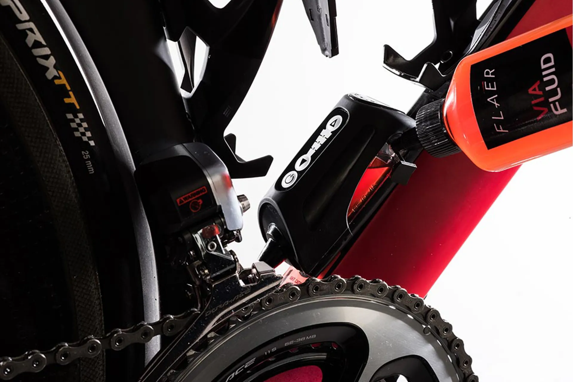 Flaer Via Fluid is a high performance solution scientifically formulated for use with a Revo Via chain performance system. Developed for all road cycling environments and conditions, Via Fluid will ensure your drive chain is lubricated to perfection giving maximum performance, from start to finish.