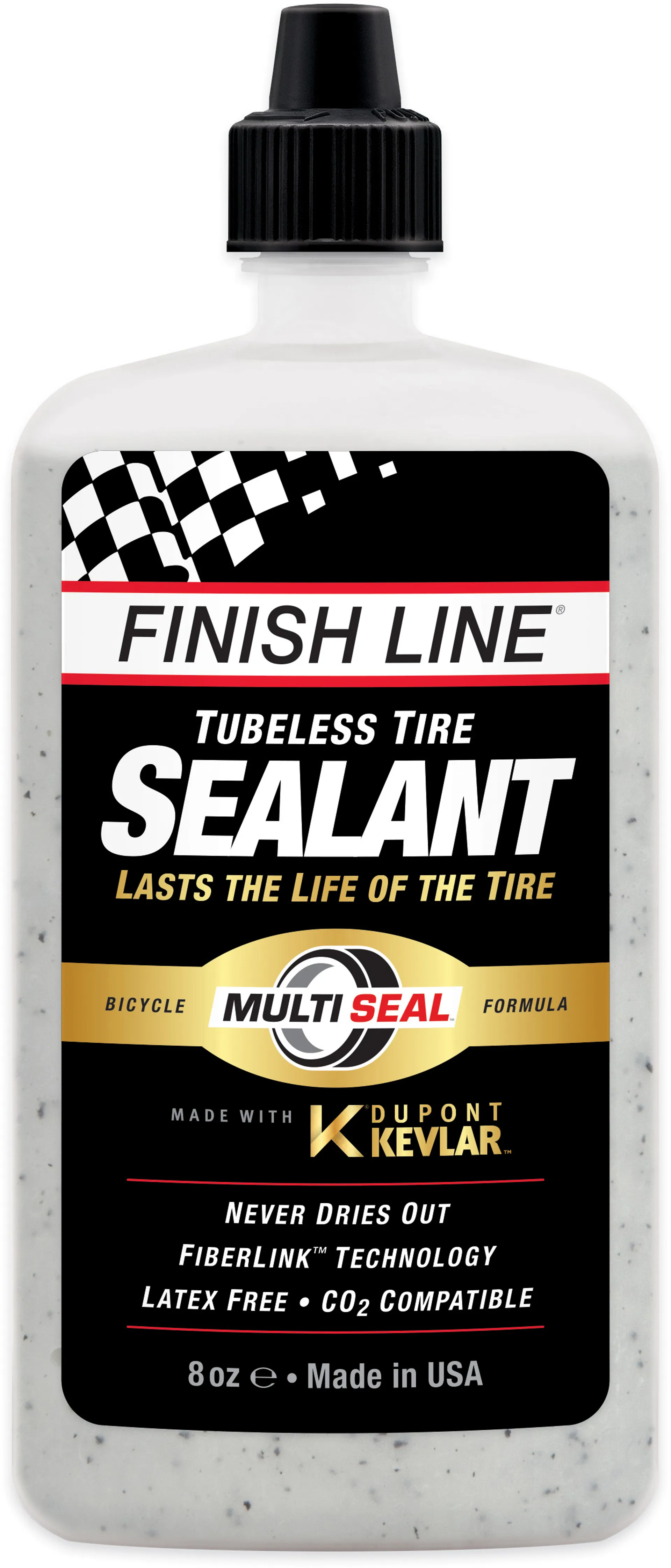 The Finish Line Multi Seal Sealant is a great tire sealent that creates a Kevlar reinforced Fiberlink seal. When a puncture happens, fibers rush into the wound and instantly stop air loss. As the tire flexes while it is ridden, the FiberLink™ mesh tightens and reinforces itself, creating a confidence-inspiring seal that will last ride after ride