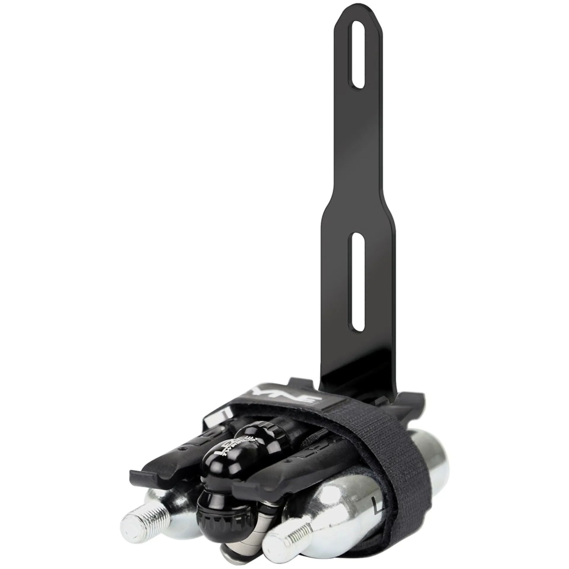 The Lezyne Flow Storage Adapter is an integrated stainless steel storage bracket that fits under a bottle cage. The Lezyne flow storage adapter has included Twin Speed Drive CO2 head, V5 multi tool, two CO2 cartridges and two Matrix levers.