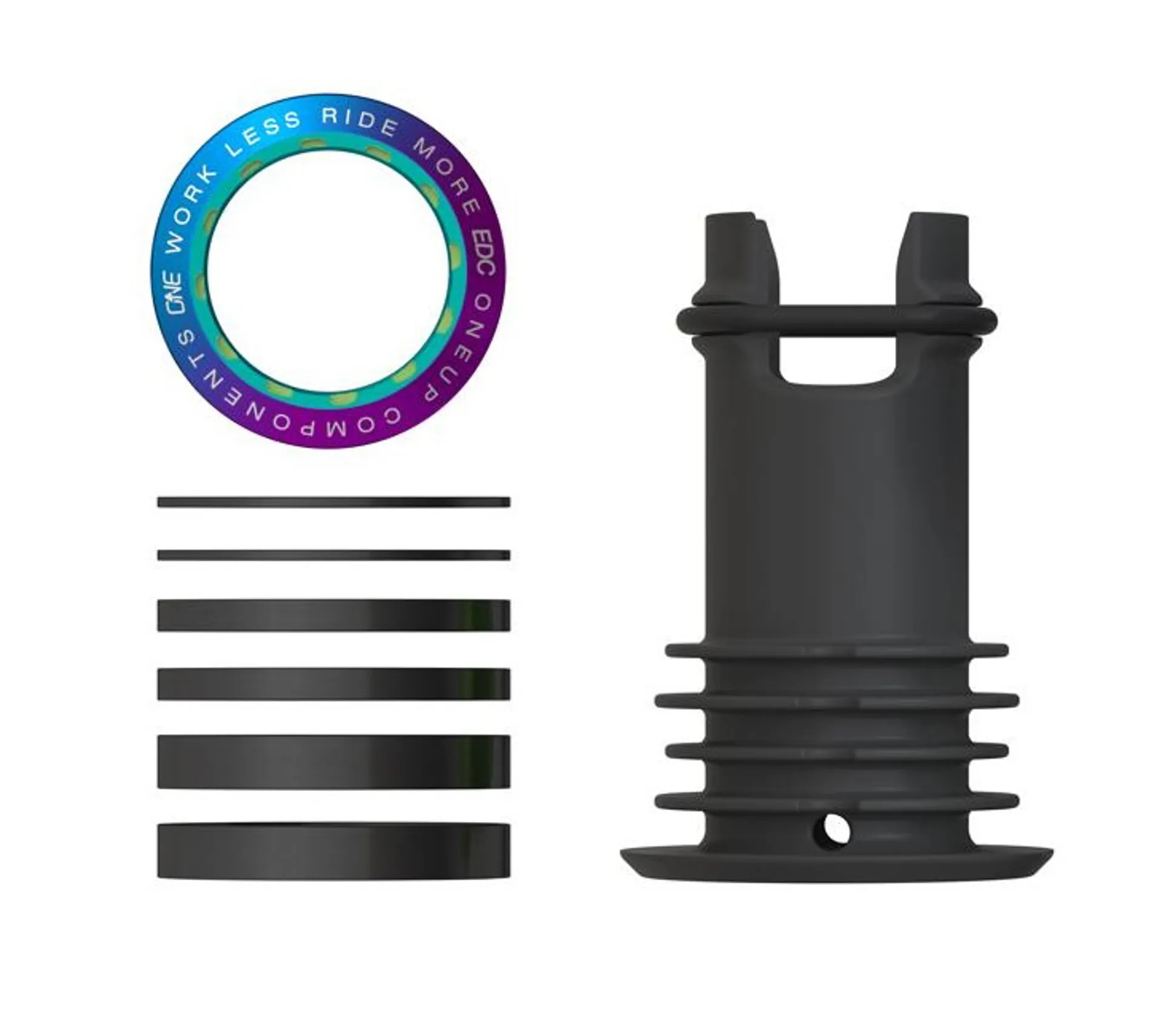 • Kit Includes: EDC Top Cap, EDC Steerer plug, 2x 1mm, 3mm and 5mm headset spacers.