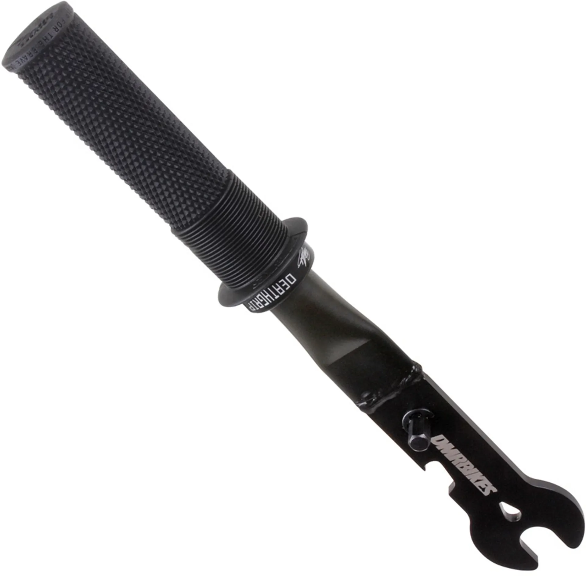 The DMR Pedal Spanner is a heavy duty, shop quality pedal spanner made with a laser cut head. 15mm direct line wrench opening positioned for optimal leverage.