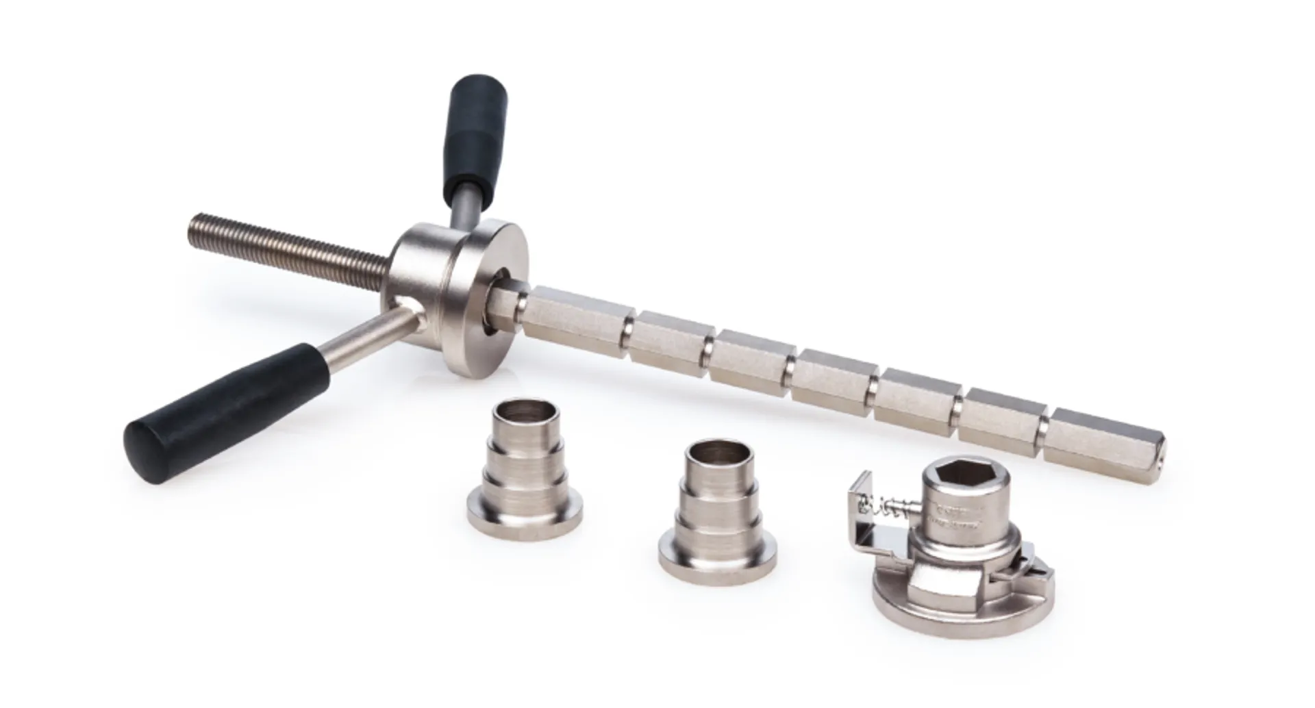 The Park Tool HHP-2 Bearing Cup Press accurately aligns and presses 1", 1 ⅛", 1 ¼", and 1.5" headset cups.