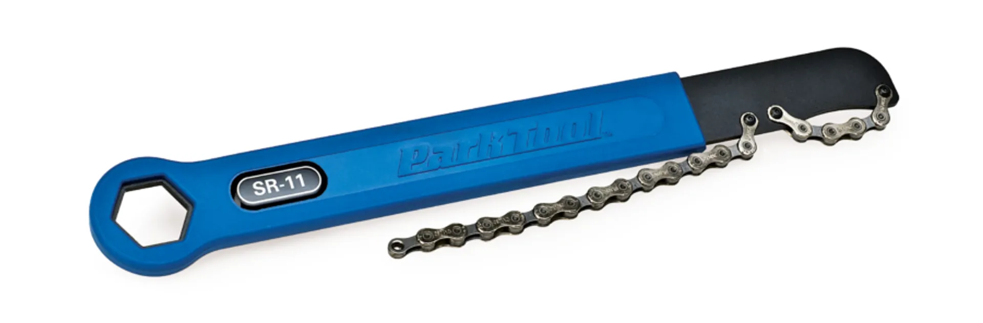 The Park Tool SR-11 Sprocket Remover/Chain Whip and freewheel / lockring remover wrench is heat treated to prevent bending and flexing, with a molded handle for comfort.