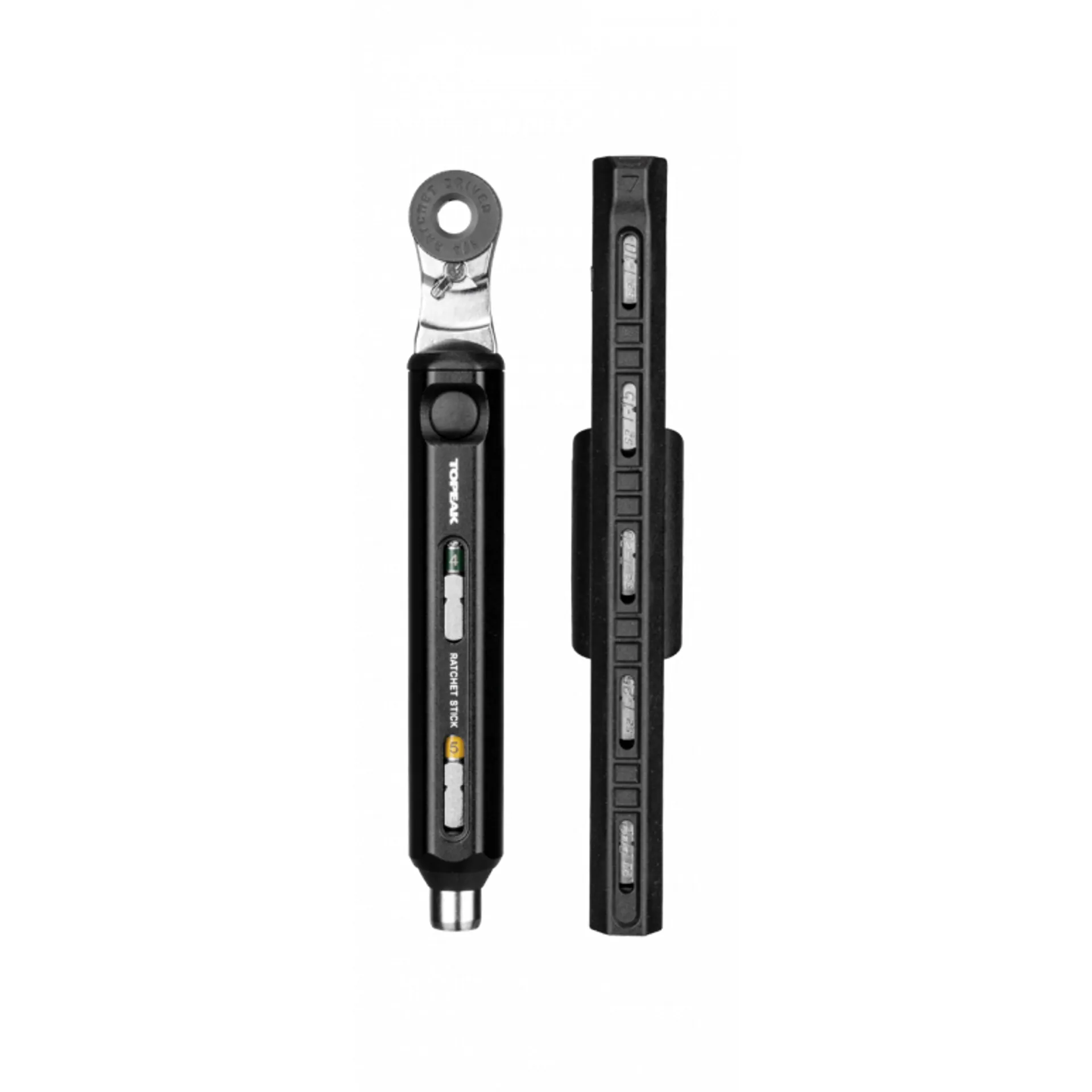 The Topeak Ratchet Stick is a compact, easy to use and carry ratchet wrench with built-in compartment letting you store five of your most commonly used bits. Includes a five bit storage pen with visible window design letting you find the correct bit quickly and easily.