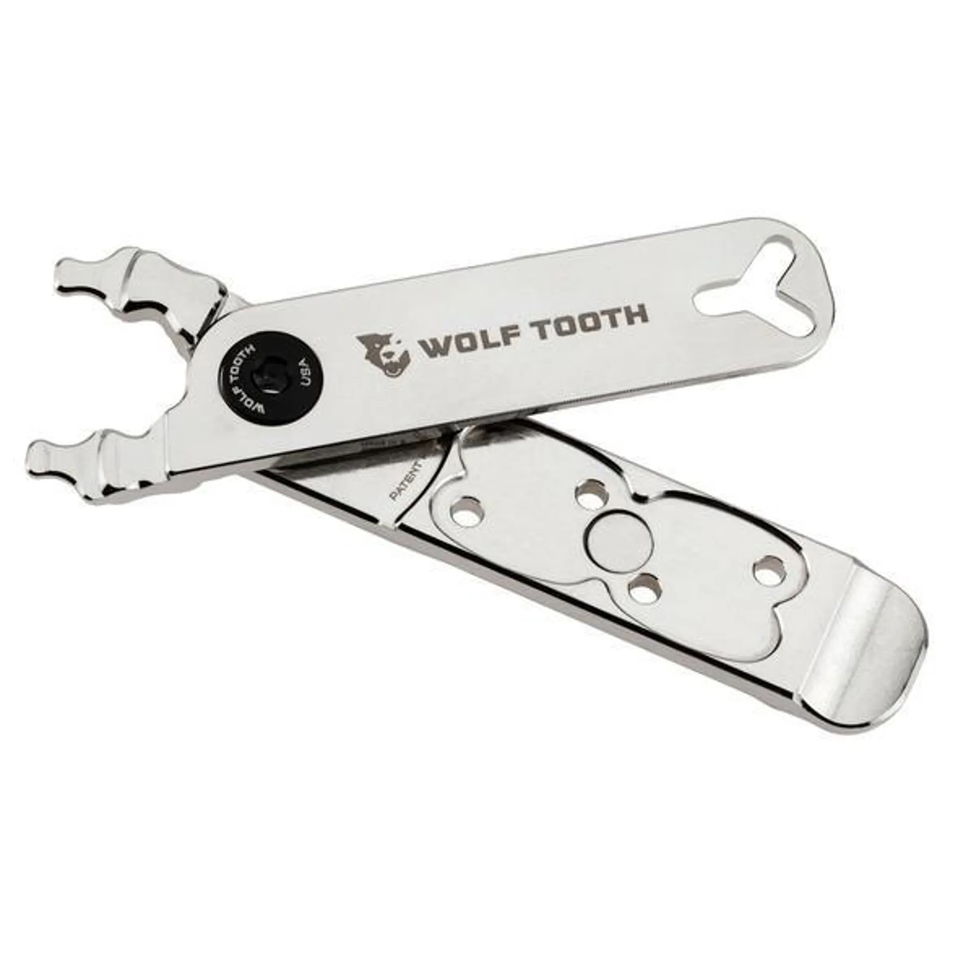 The Wolf Tooth Pack Pliers Nickel Plated Master Link Combo Multi Tool is developed to provide functions that are not found on a typical multi-tool.