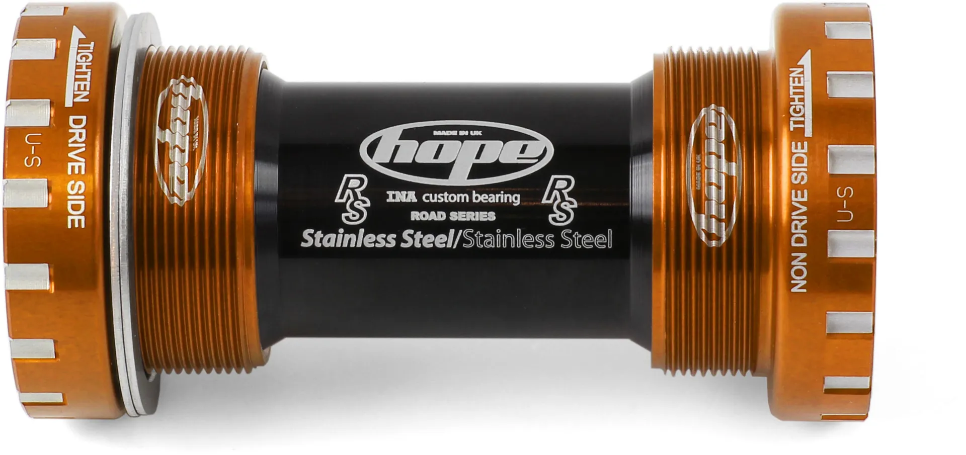 The Hope Standard Road Bottom Bracket is the ideal unit for using with Shimano, Race Face, FSA and others. The custom, Swiss made bearings on this Hope bottom bracket are double sealed, fully serviceable and removable which give much greater life span than stock units. The bearings are made by INA and have been designed to run directly on the crankset axle, without the use of shims or spacers - again increasing life and reliability.