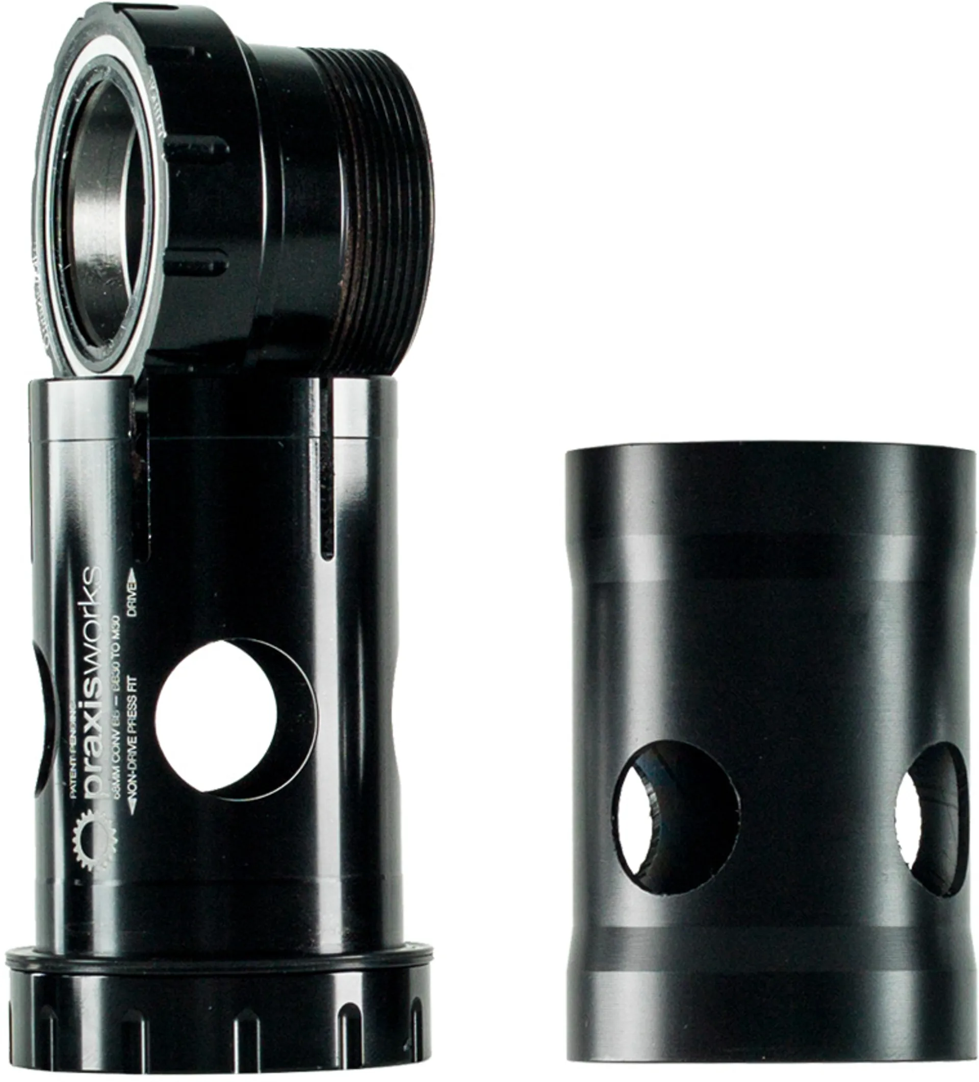 The Praxis M30 Bottom Bracket 68/73mm. The M30 bottom bracket allows us to use one spindle for three of the most common bottom bracket frame standards in the market. The M30 bottom bracket is available as English threaded frames, BB86/BB92, or in the very popular Praxis Conversion for BB30 or PF30 frames. This design keeps the cartridge bearings outboard the frame free of frame tolerance issues and keeps the bearings aligned for longer wear and noise free riding. One crank, with proper bottom brackets’s for compatibility across many frame types.