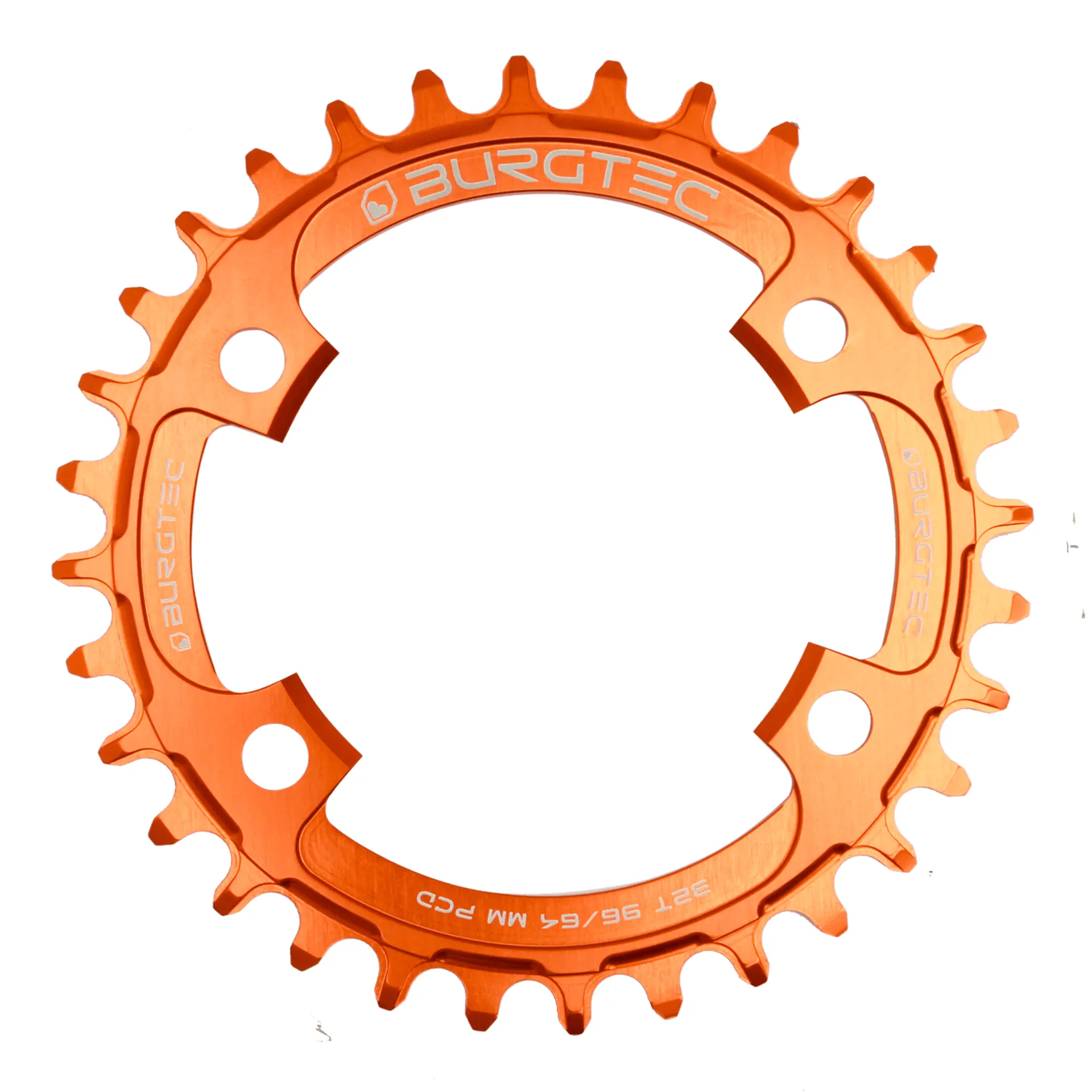 Burgtec ThickThin XT 96/64mm PCD Chainring Iron Bro Orange