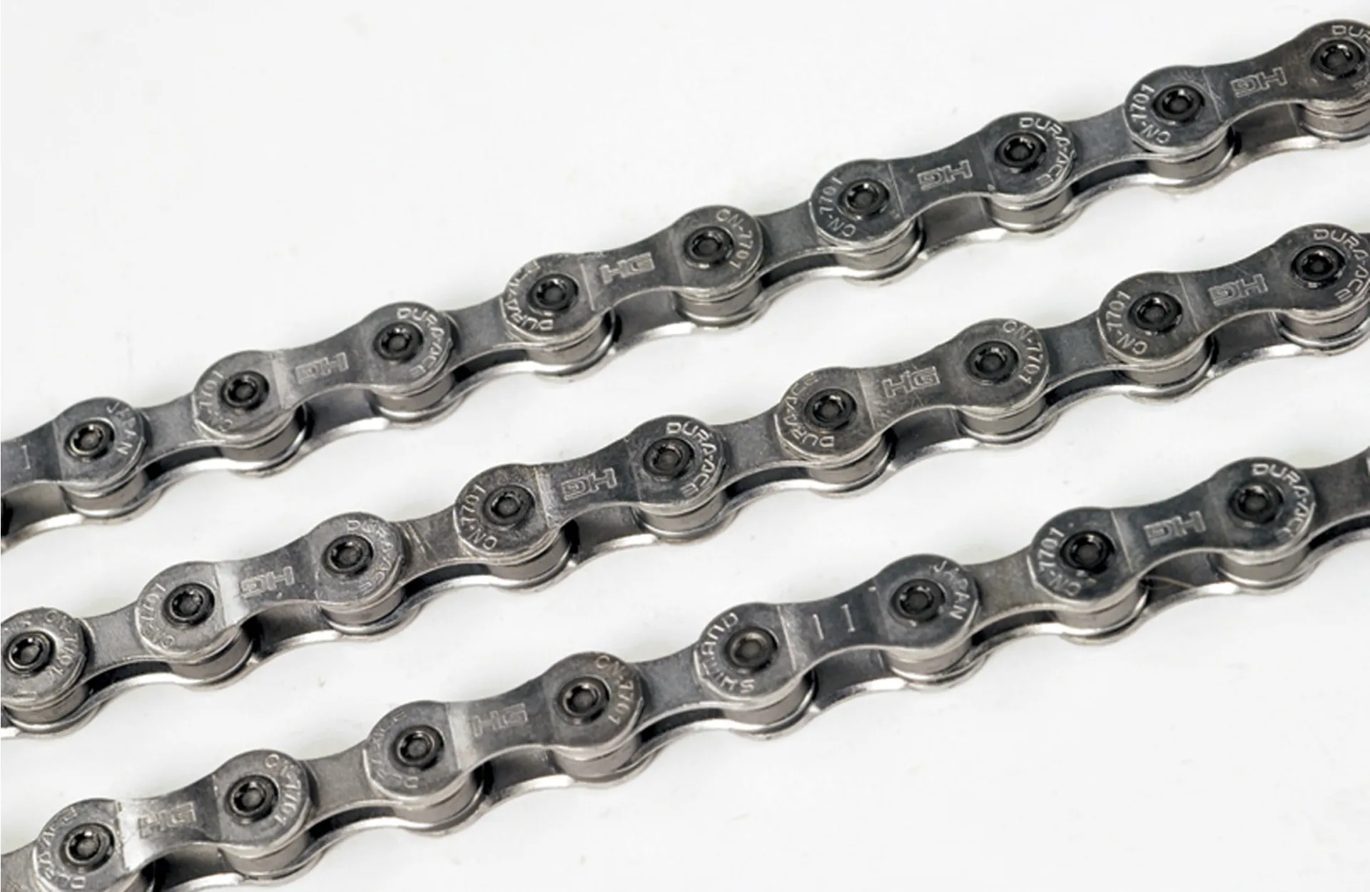 The Shimano CN7701 Dura Ace 9 Speed Chain. A Hyperglide (HG) series 9-speed compatible chain, recommended for XTR and Dura-Ace drivetrains.