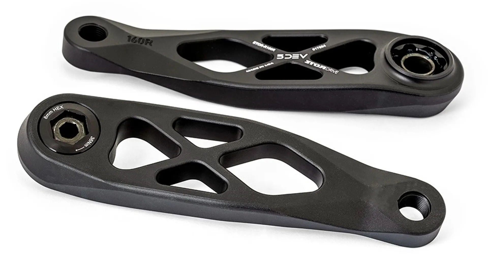 5DEV's exclusive design will greatly reduce crank strikes when climbing through technical rock sections. These cranks are installed in minutes and are made to handle anything you throw at them!