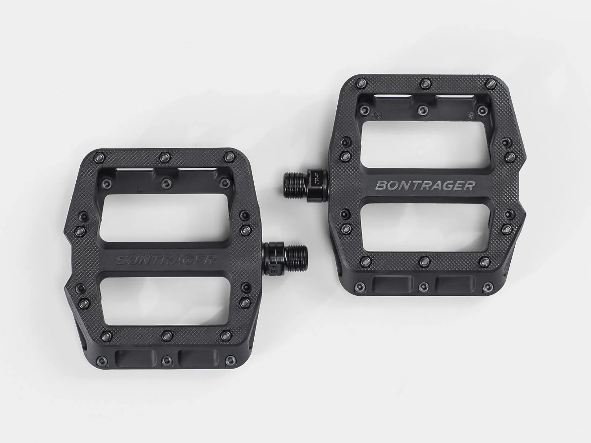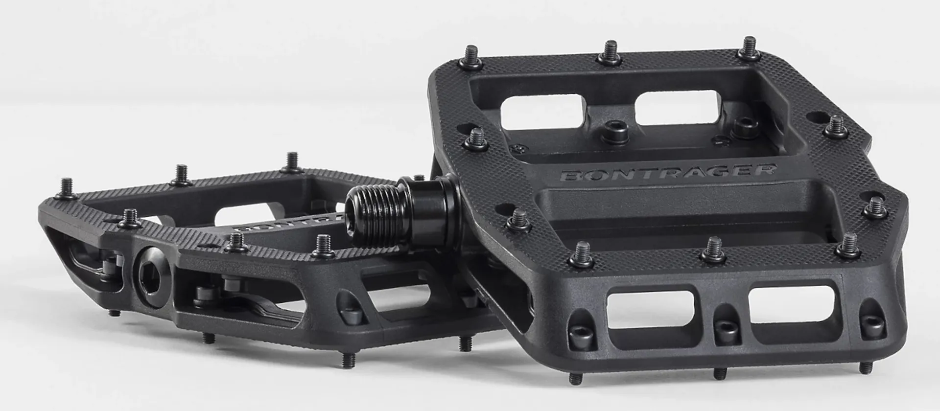 The Bontrager Line Elite Flat MTB Pedals feature a durable nylon design and replaceable pins for consistent grip.