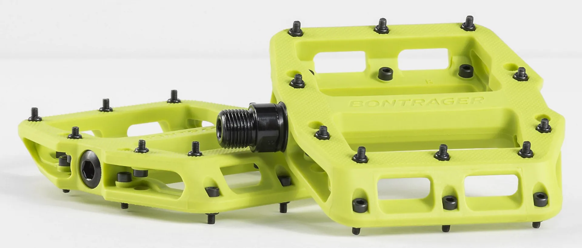 The Bontrager Line Elite Flat MTB Pedals feature a durable nylon design and replaceable pins for consistent grip.