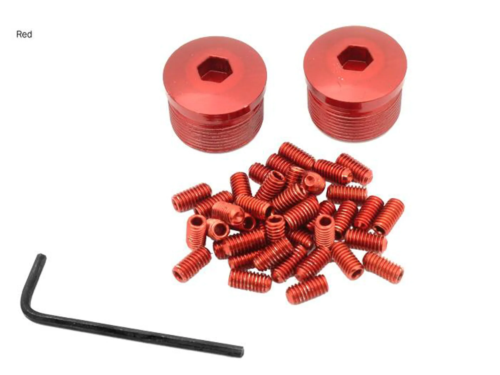 Pimp your V12 pedals up! with these 40 brightly pimped coloured pins and 2 end caps, 2mm allen key included.