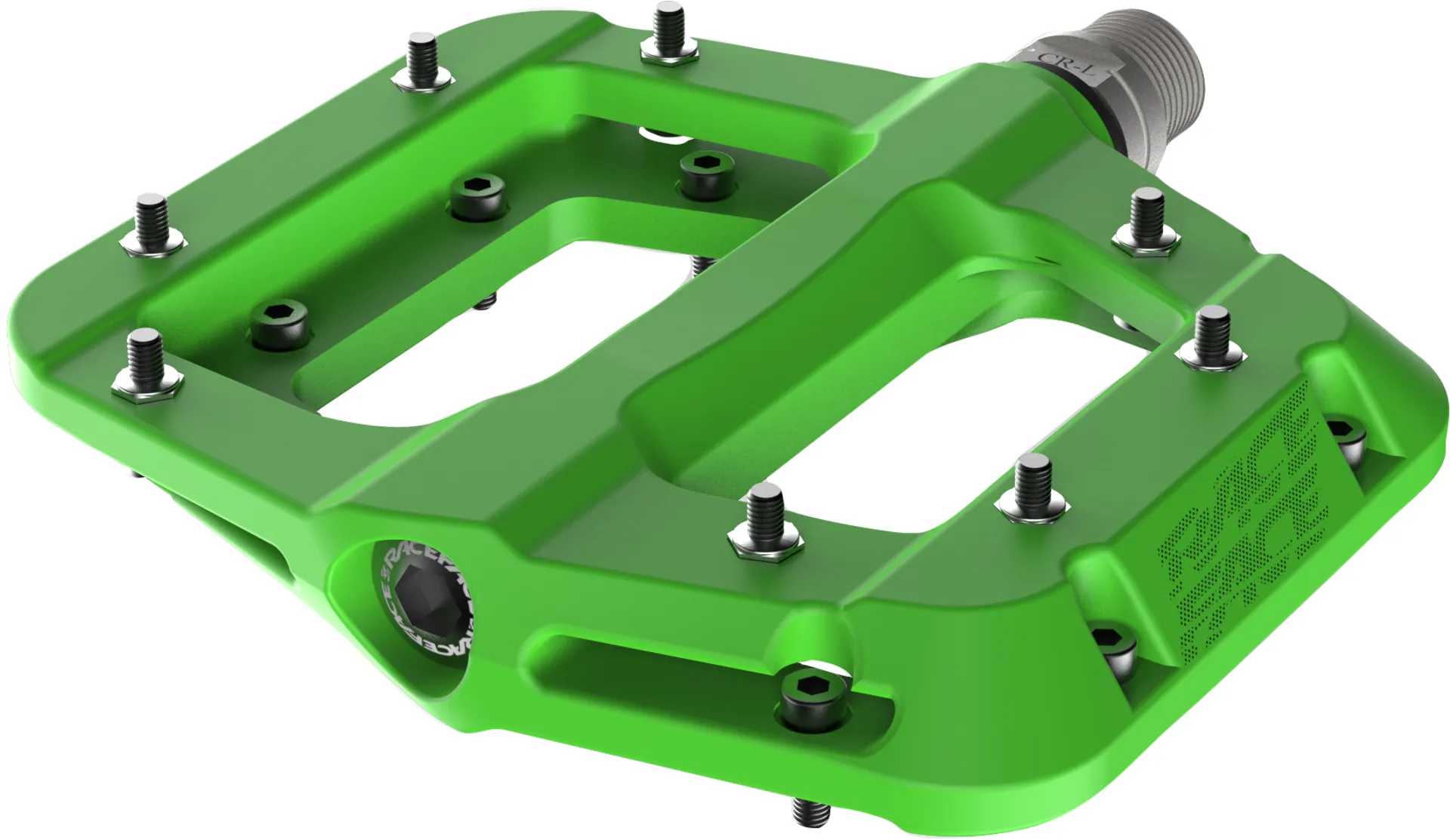 The Race Face Chester Pedal. A new edition to the Race Face pedal line-up: the Chester Pedal. The tough and burly nylon composite body provides a large platform with the same grip as traditional alloy pedals via the bottom loading 8 hex traction pins per side. Thin and lightweight is the name of the game with the Chester, featuring a cro-mo axle that is fully sealed and a 100% serviceable bearing and bushing system. This pedal offers great performance for a wide range of riders at a price that leaves plenty of cash in your pocket for that round of bevies at your local watering hole after hammering out a day of hot laps with the crew.
