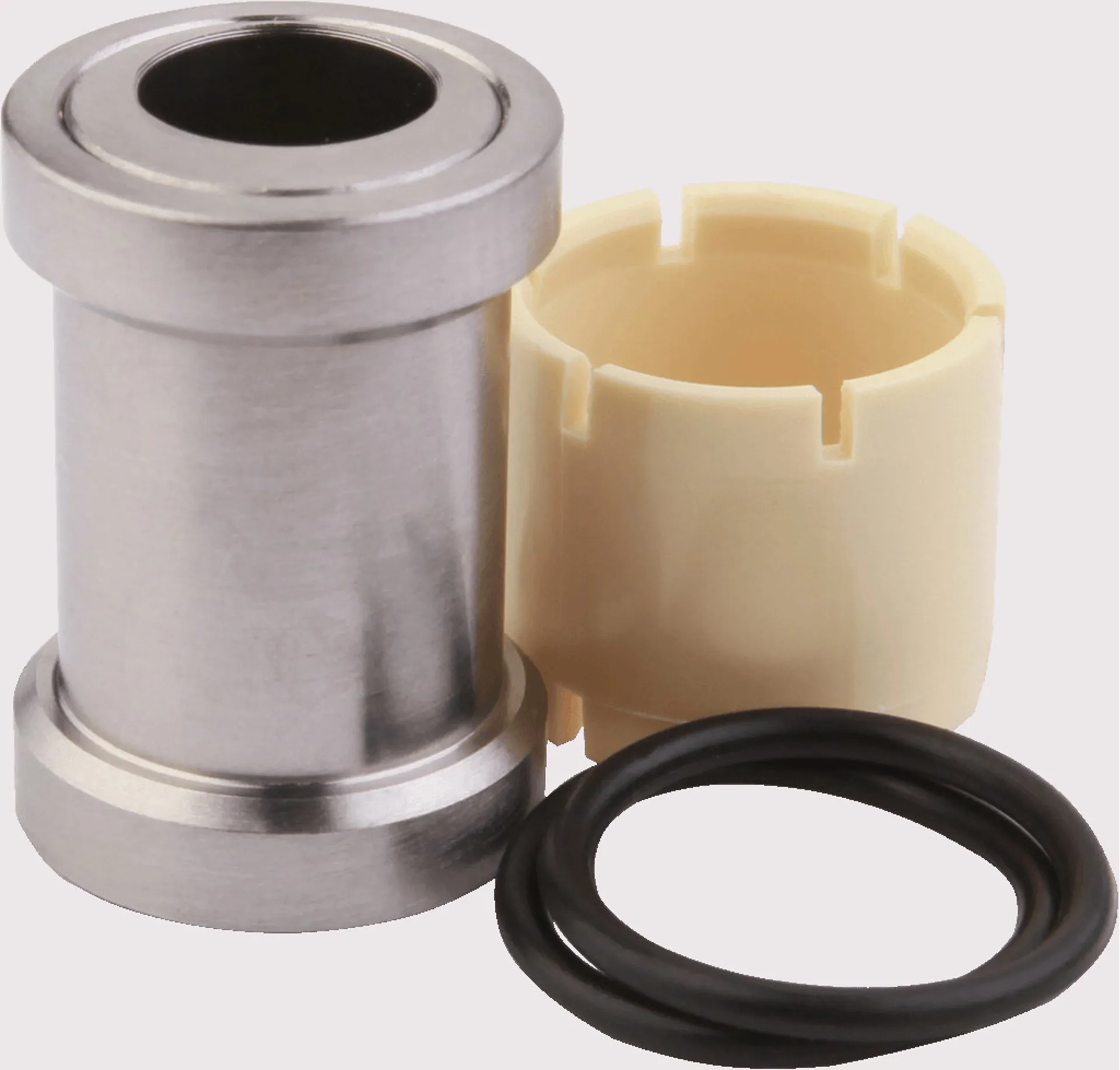The bushes can be used in the opposite way to steepen the head angle to improve the bikes geometry for sprinting if the track is more pedalling orientated. This pitches the rider more to the front of the cockpit and more on top of the bars which is better for sprinting. The hardware is made from grade 5 Titanium. Which is significantly lighter than its steel hardware counterpart but still maintaining the same excellent wear rating when compared to OE Aluminum ones; Approximately 3 times. The hardware comes supplied with a proprietary o-ring seal to keep out as much of the elements as possible. As well as DU bushes.