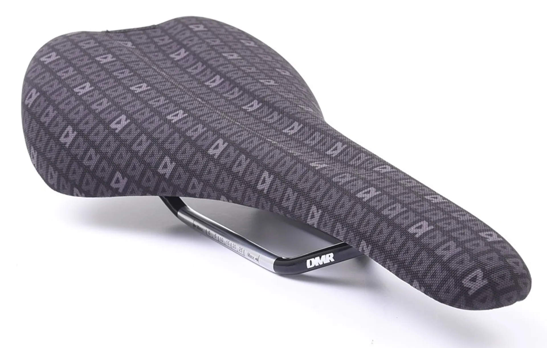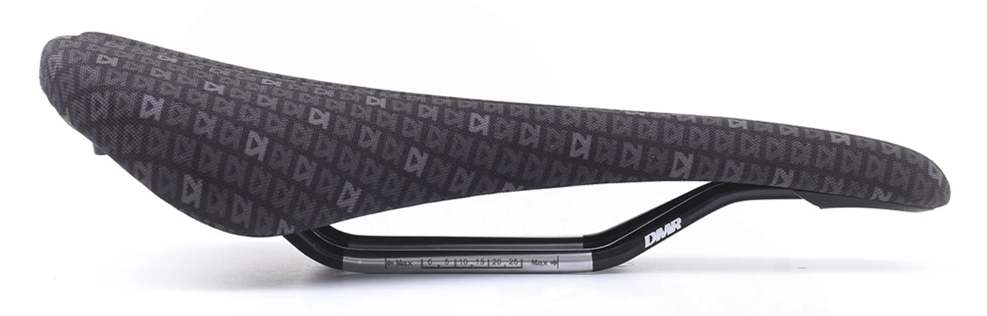 The DMR 25 Year MTB Saddle is a versatile mountain bike saddle with a durable woven fabric cover, featuring the 25th anniversary DMR print.