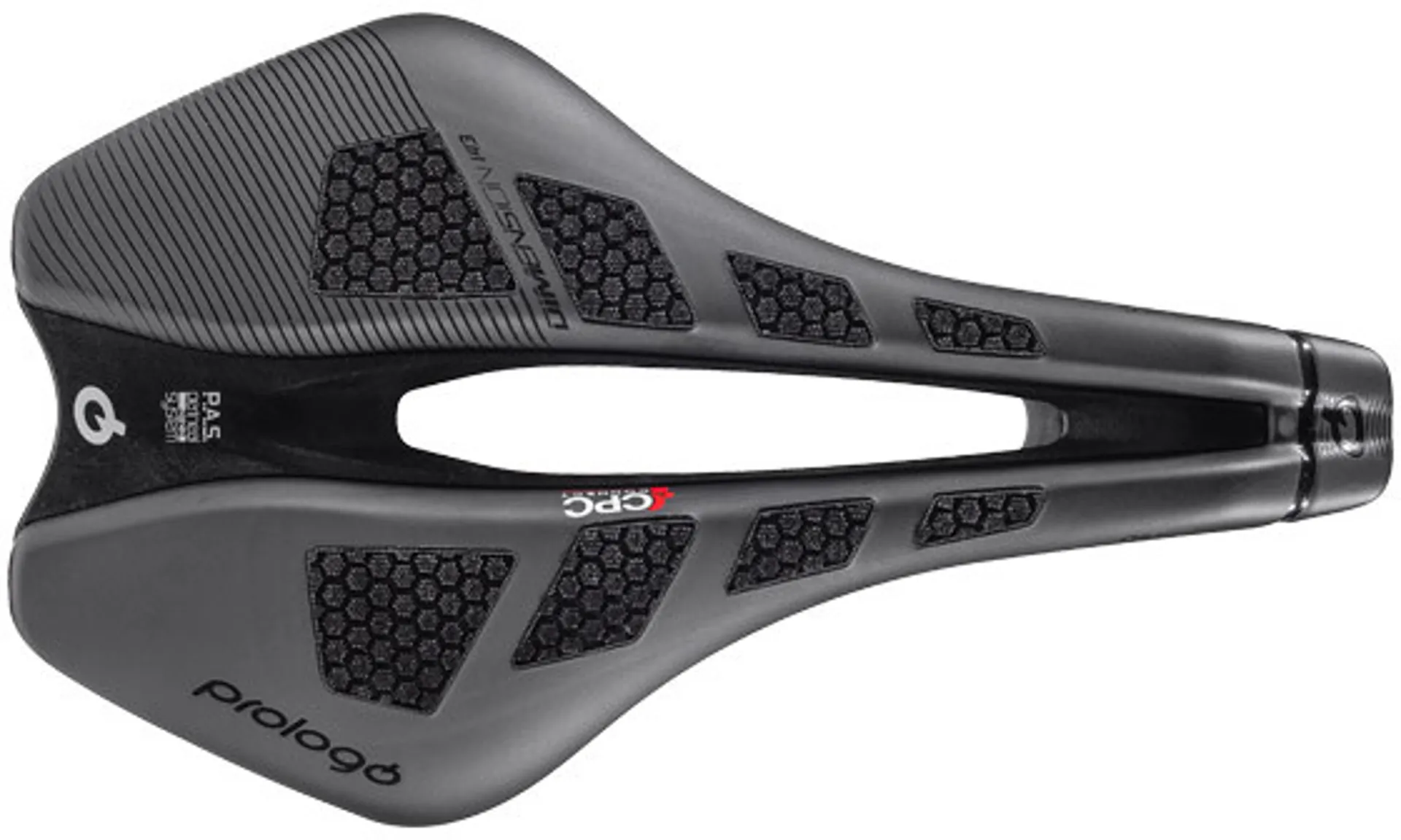 The Prologo Dimension Nack CPC 143mm Road Saddle has all the features of the original Nack, but now with our patented CPC (Connect Power Control) technology, introduced on Dimension, we can satisfy every high-end customer helping him to reach his best in comfort, performance and feeling with the bike. The CPC is manufactured with a special 3D nano-polymer positioned in strategic areas of the saddle and it provides grip and an optimal position in all weather conditions, ensuring the maximum shocks absorbing and anti-vibrations: in the latest version called CPC AIRING, it increases air flows wicking away both heat and sweat.