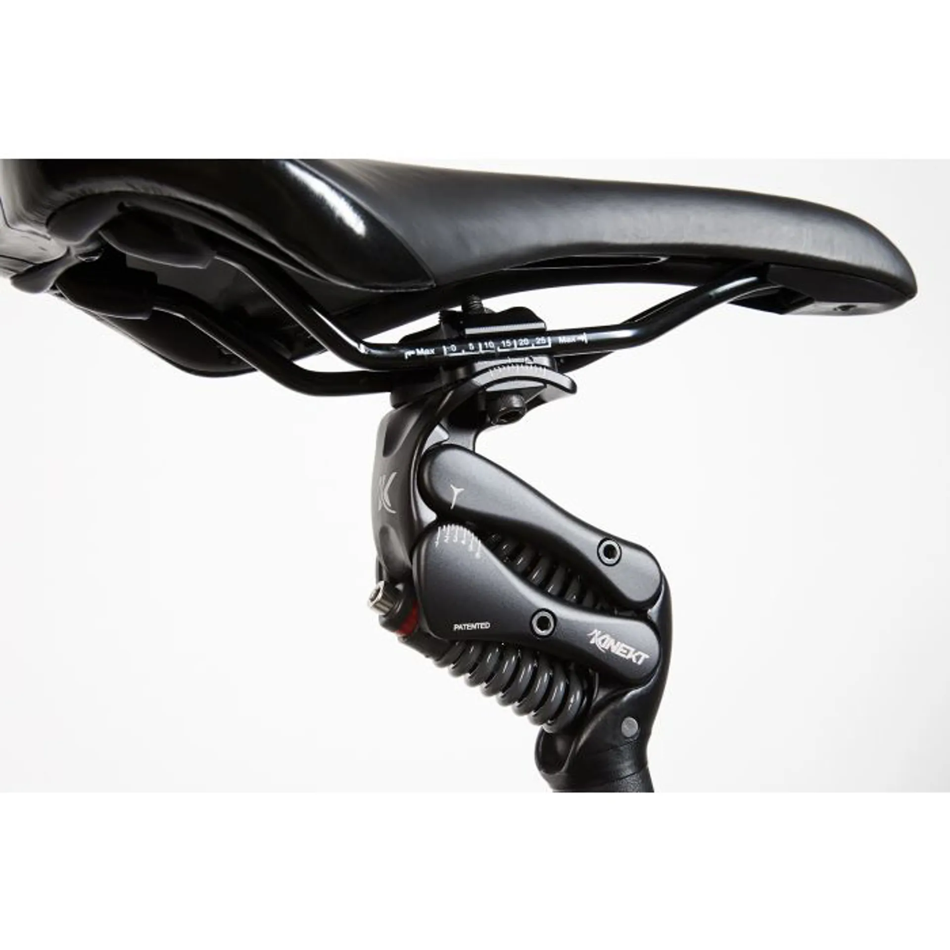 Using two springs, Kinekt seatposts are designed to move vertically, not horizontally, keeping the saddle in place. The 35mm of friction-free vertical travel lets the rider move comfortably over rough terrain, and eliminates bumps and vibrations, and noticeably reduces back pain and muscle fatigue.