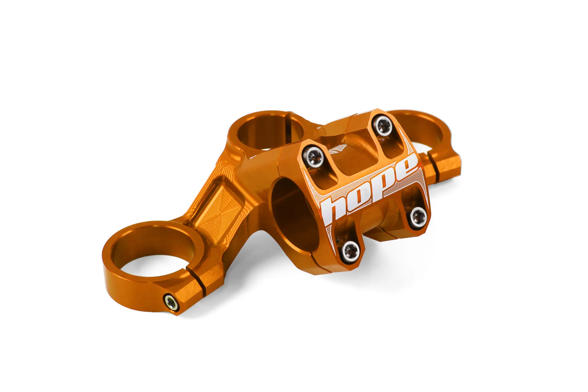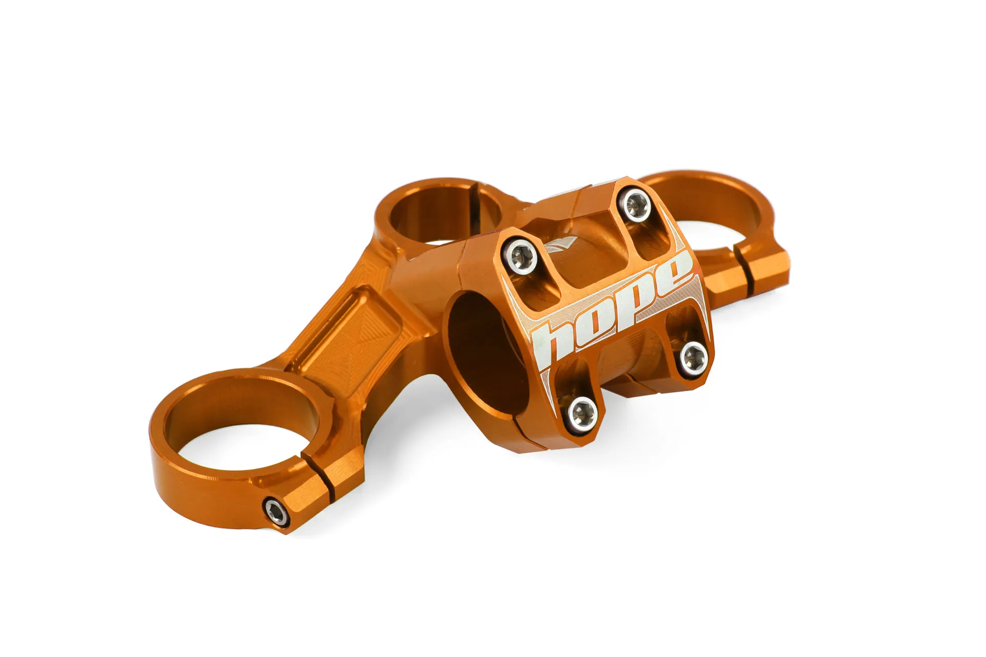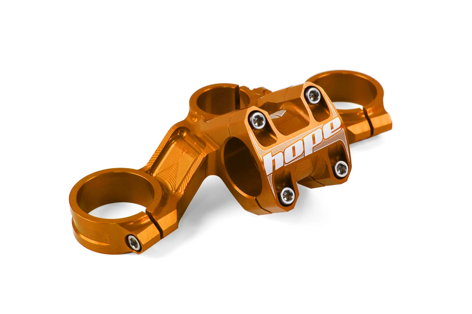 The Hope Top Crown is the ultimate in performance, strength, stiffness and style! The handlebar clamp is integrated into the crown, and is a must for any serious downhill rider.