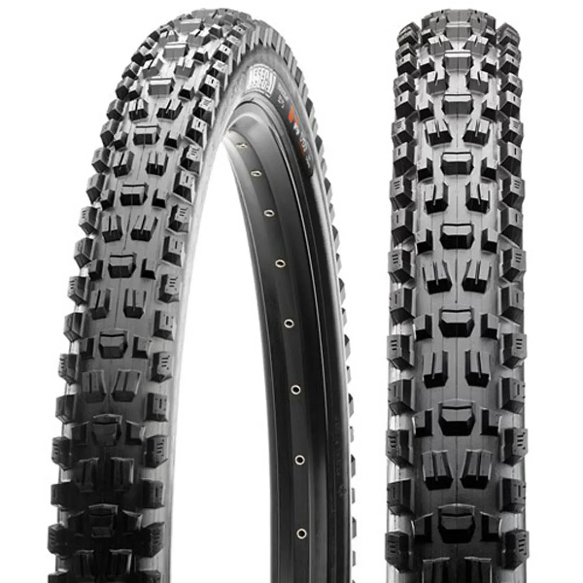 What do you get when you combine attributes from legendary Maxxis treads like the Minion DHR II, High Roller, and Shorty? You get the Assegai, the new signature tire from the mind of Greg Minnaar! The tall knobs punch through dust and loam to find traction, but also offer support and confidence on wet roots and rocks.