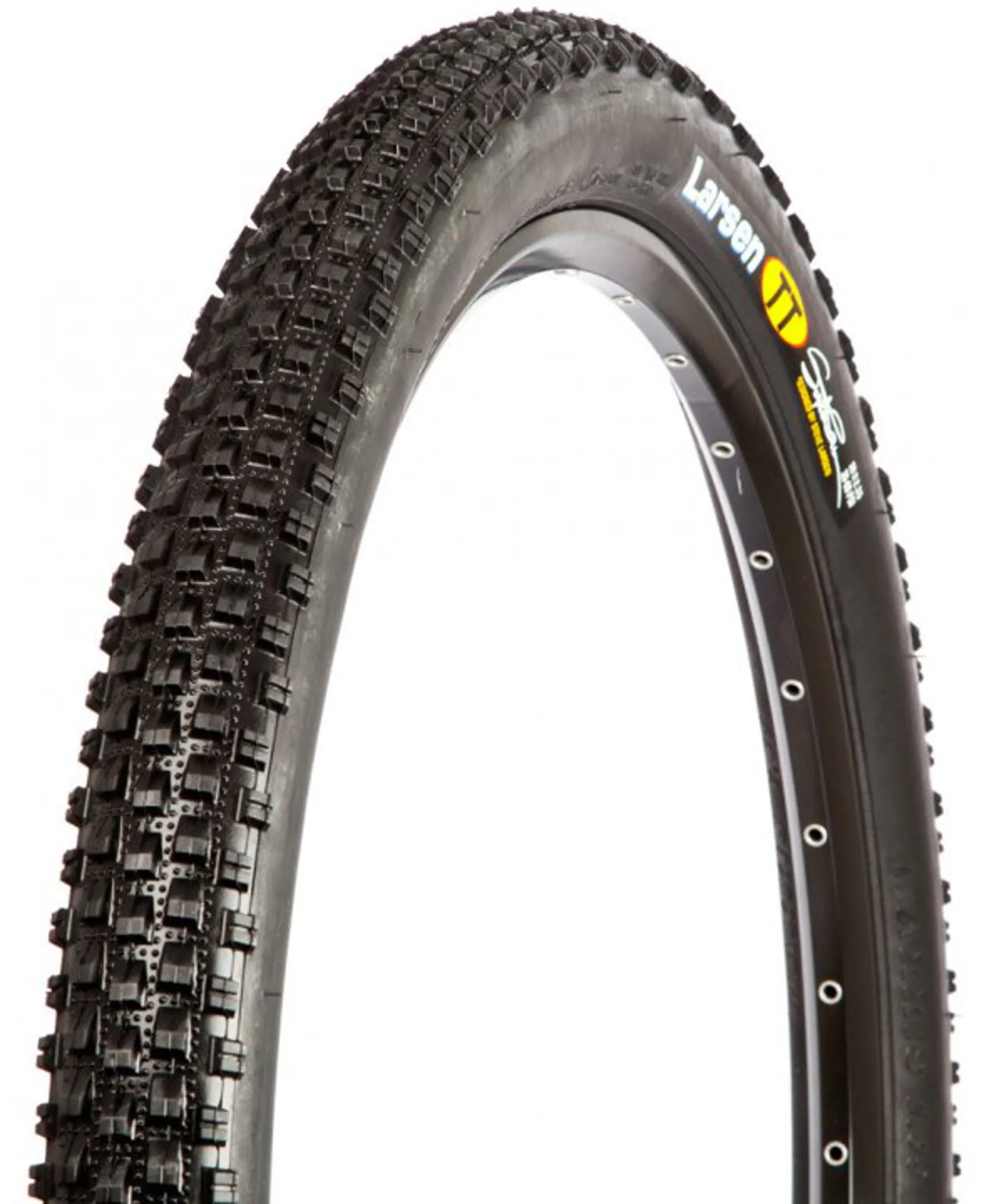 The TT hooks up well because each small, square lug in the tread pattern is ramped to roll easily, yet tightly spaced so more knobs are making contact with the ground. Thus, the contact patch is effective on a wide variety of surfaces.