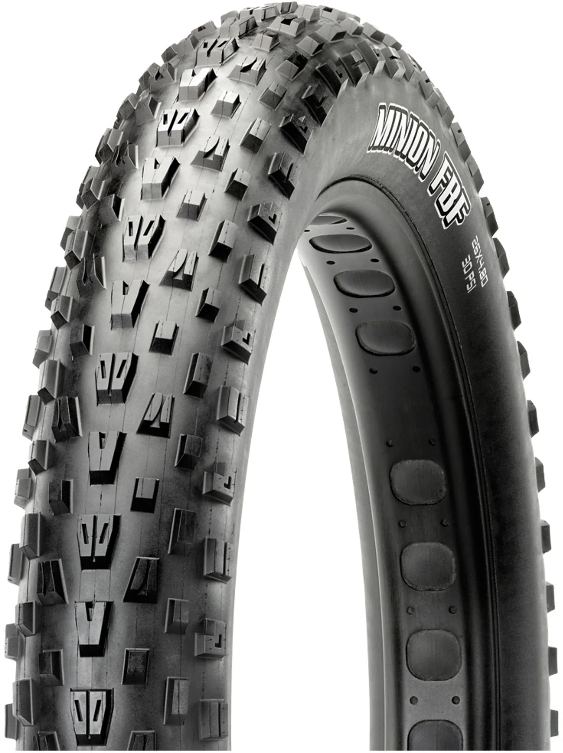 The Maxxis Minion FBF Tyre represents a progression in fat-biking by offering a front specific tyre designed for trail riding. Featuring the proven Minion DHF tread blocks. the Minion FBF combines extreme cornering capability, low rolling resistance, and fat-tire volume for unsurpassed grip on uneven and loose surfaces.