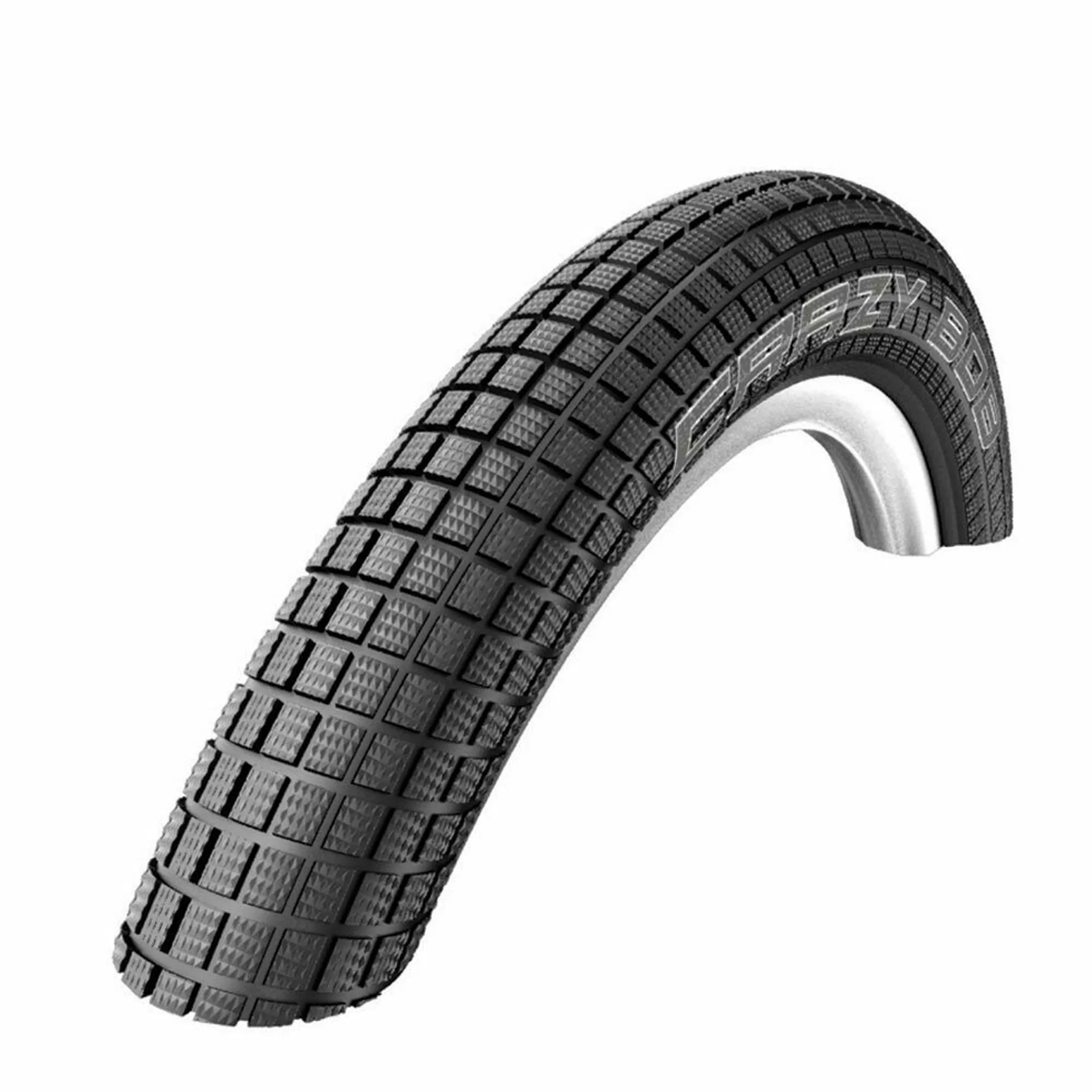 The Schwalbe Crazy Bob Tyre remains chilled on wild tricks and steep ramps. The wraparound tread has great grip in half-pipes and it's a snap forwards or backwards with such versatile handling characteristics. Special strengthening protects the sidewalls.