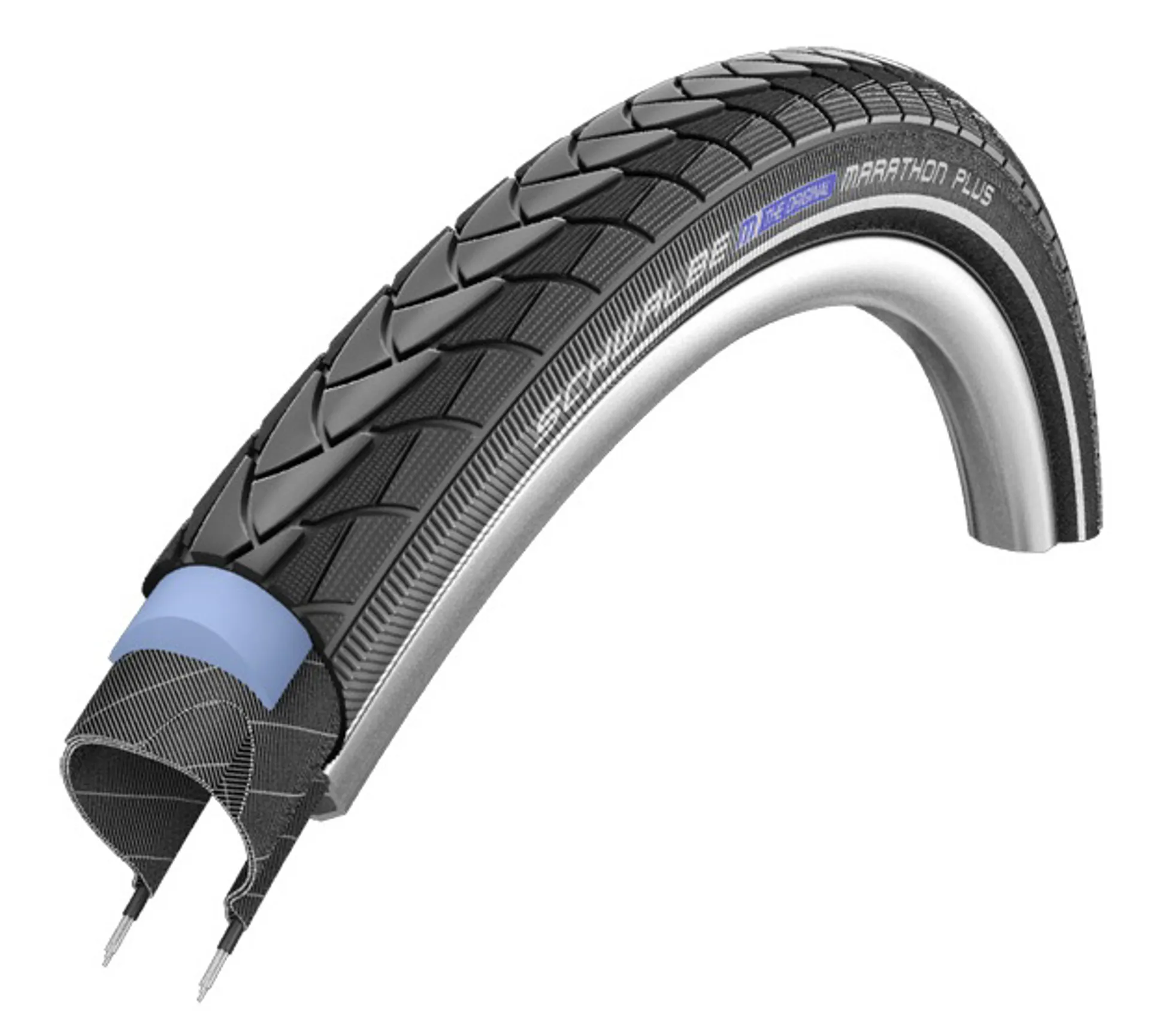 The Schwalbe Marathon Plus Tyres is a flat-less tyre. Schwalbe's best selling model. The most puncture resistant pneumatic tyre there is. In addition to the superior puncture protection, it features many hidden values: