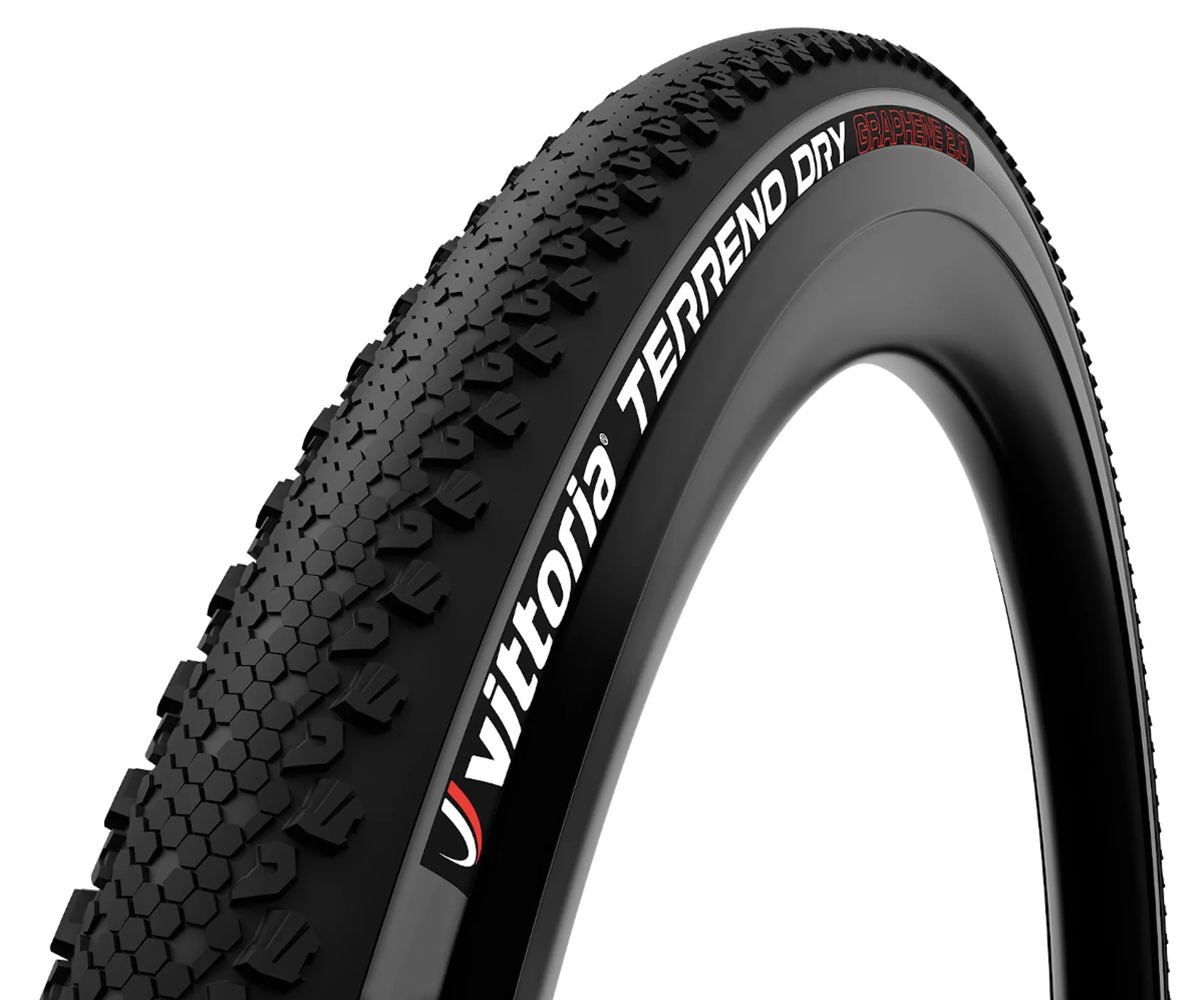 The Vittoria Terreno Dry G2.0 Folding UST 700c Gravel Tyre features an aggressive file tread and super low-profile knob design.