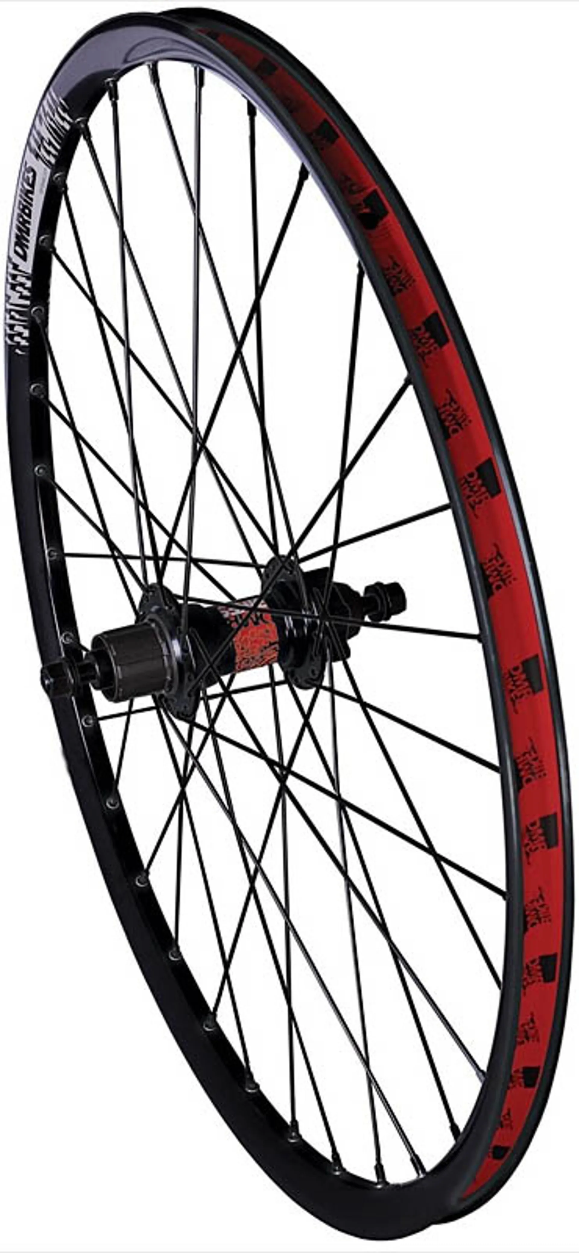 All the wheels include DMR rim tape (in red and black of course!) and are built to the same high quality and hand finished to high standard; stress relieved and re-tensioned to ensure a durable tough wheel. The black rims and spokes with deep red anodized hubs look the business too. We carry all the service parts as spares so you can be confident these wheels will keep rolling.