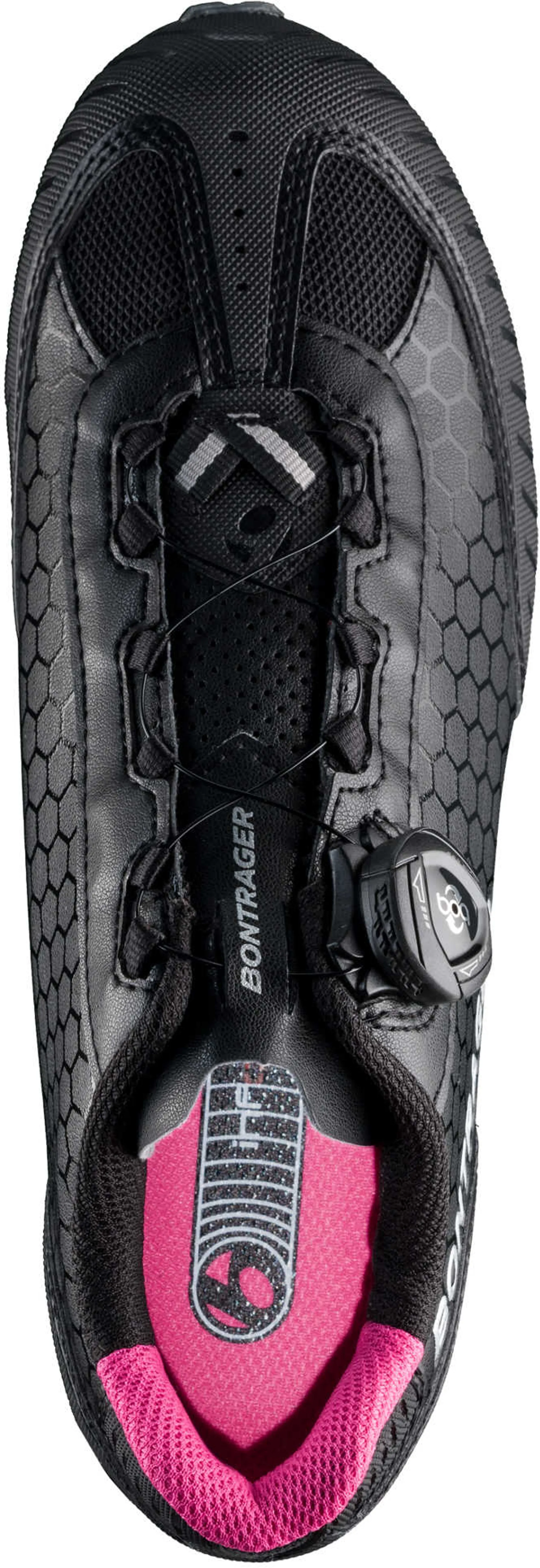 The Bontrager Rovv Womens MTB Shoe. Climb to new heights in Rovv Women's Mountain Bike Shoes that won't quit on you thanks to a stiff sole with a durable upper for an overall reliable trail shoe. A Bronze Series Composite sole means efficient power transfer, while the ergonomic inForm footbed gives you worry-free comfort that stays secure with the proven Boa dial.