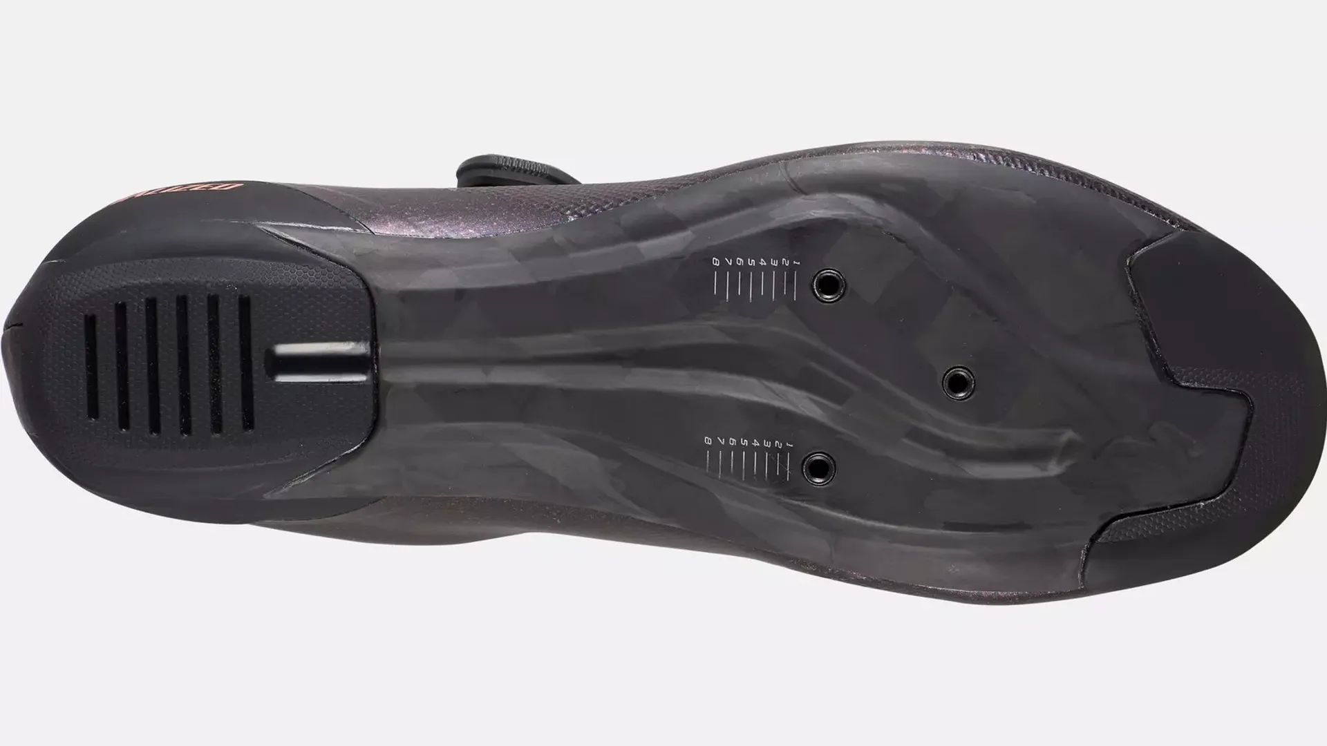 • Carbon sole with a 7.0 Stiffness Index is engineered to be moderately stiff, yet light with a rubber heel and toe for off-the-bike traction.